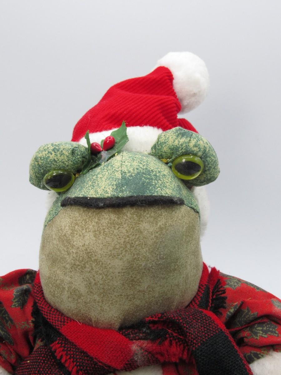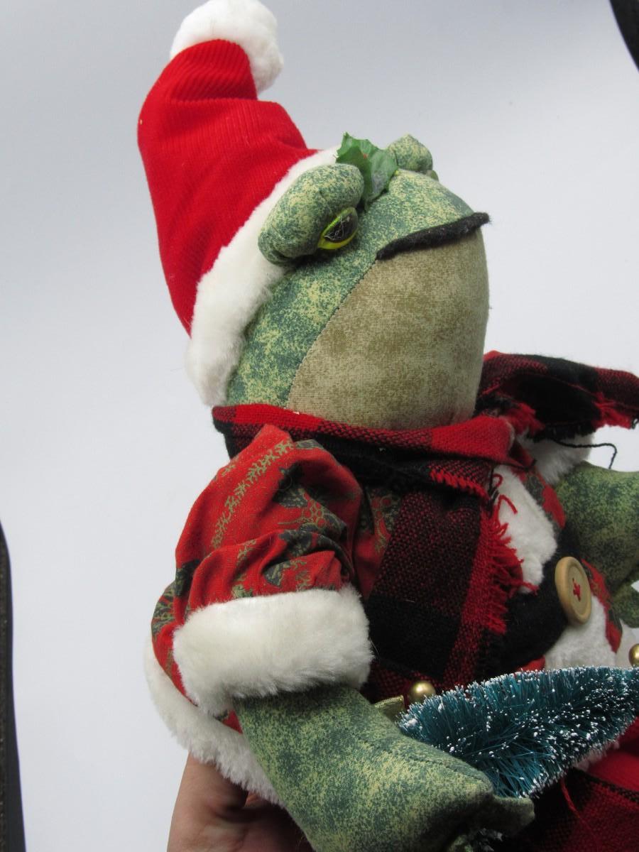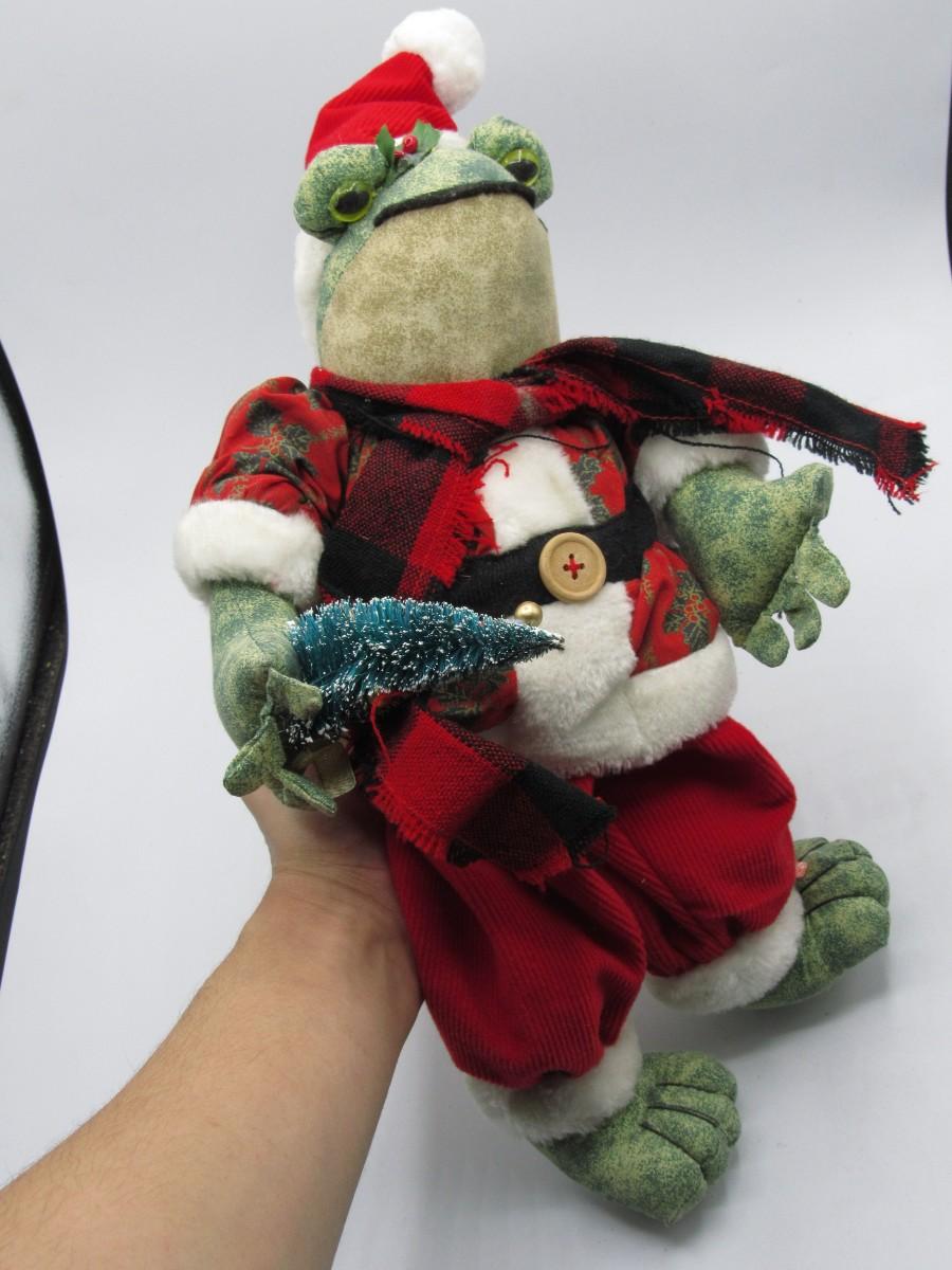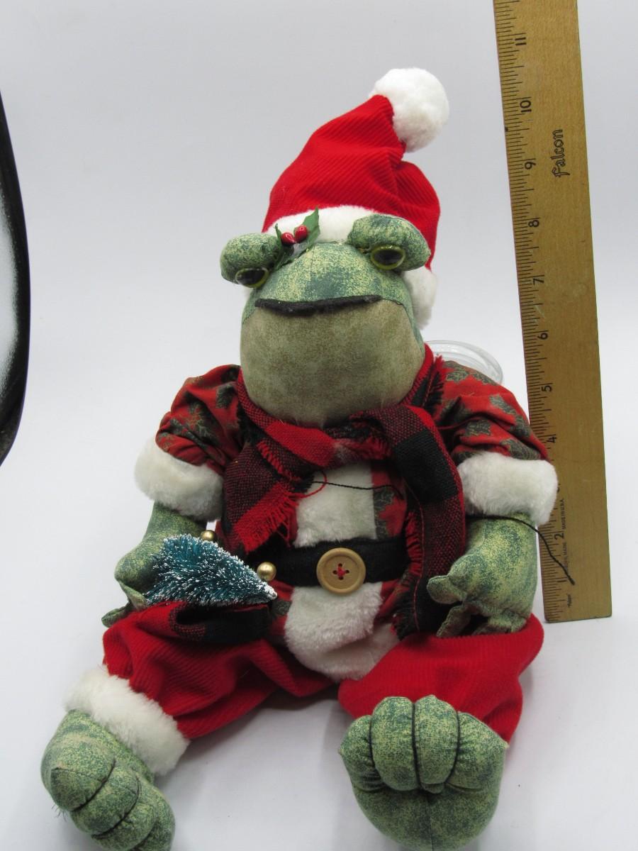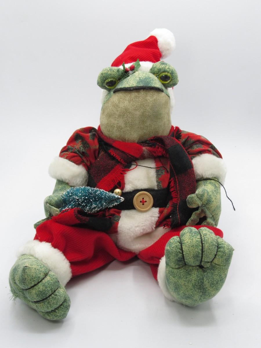 Santa Claus Frog Holding Pine Tree Model Shelf Sitter Holiday Decor