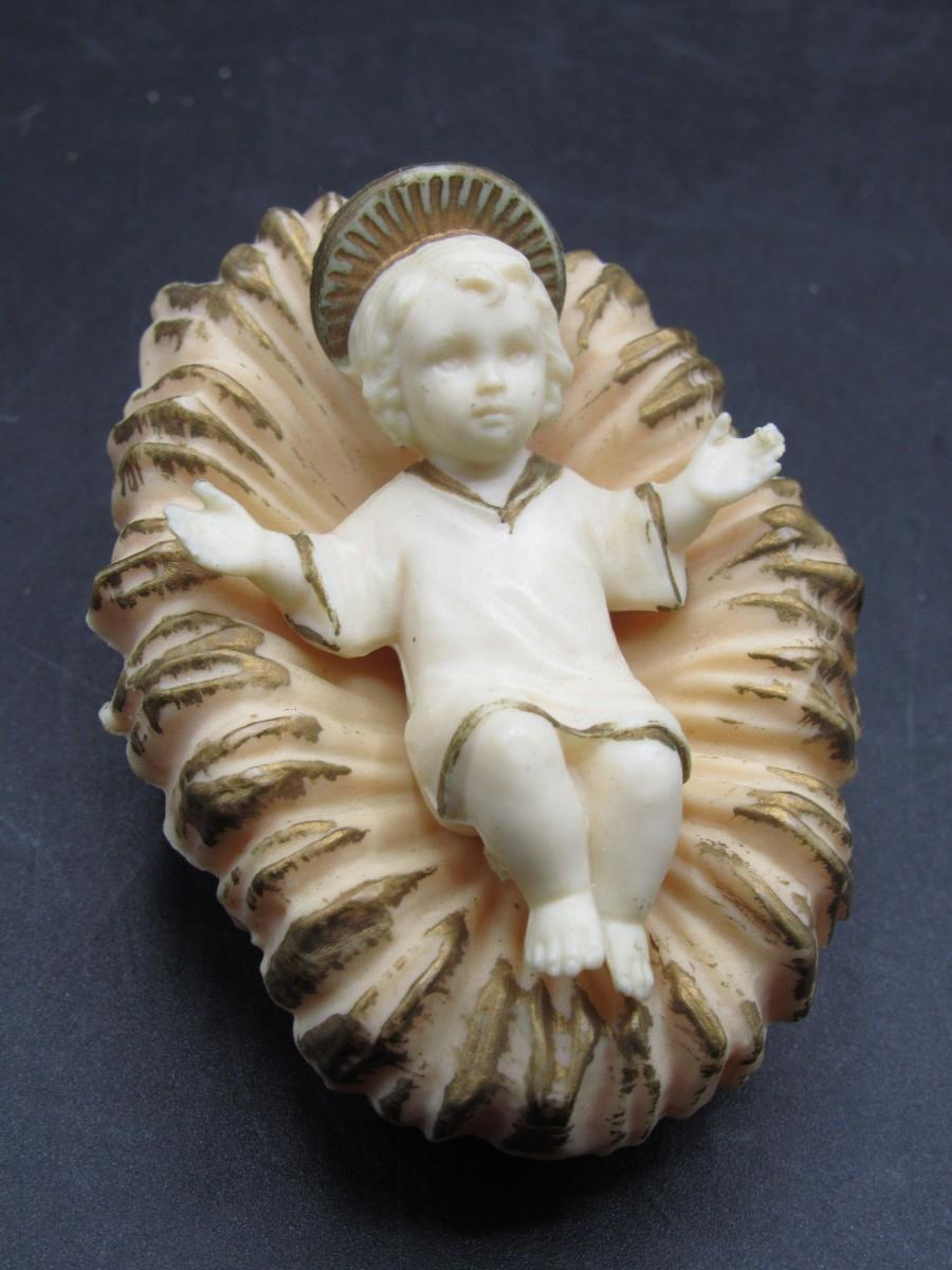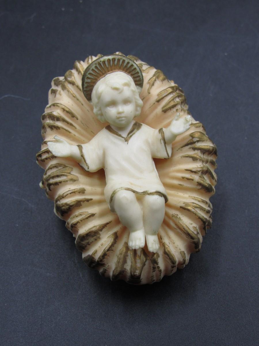 Vintage Plastic Made in Hong Kong Baby Jesus Christ in Manger Small Figurine