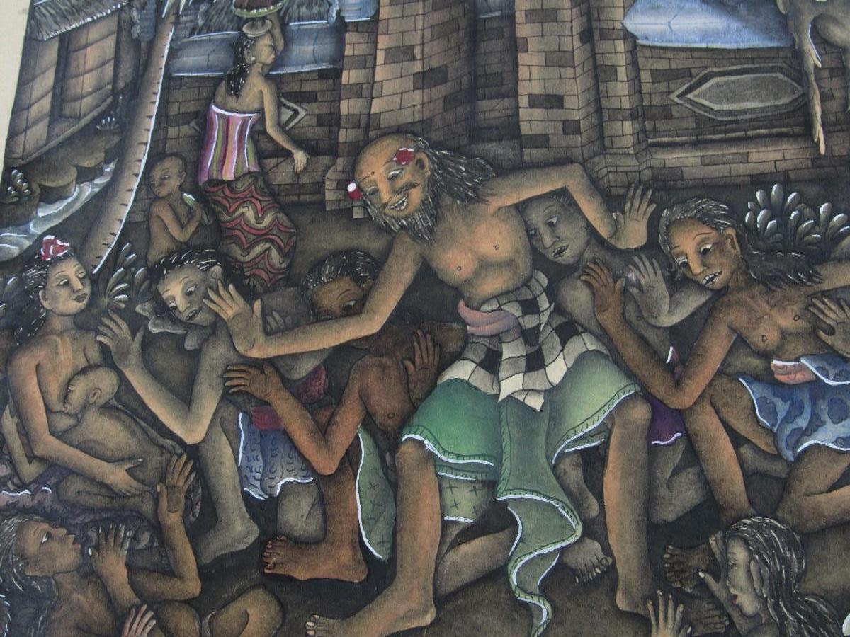 Tropical Village Dancers Print. Approx print size is 13" x 10".