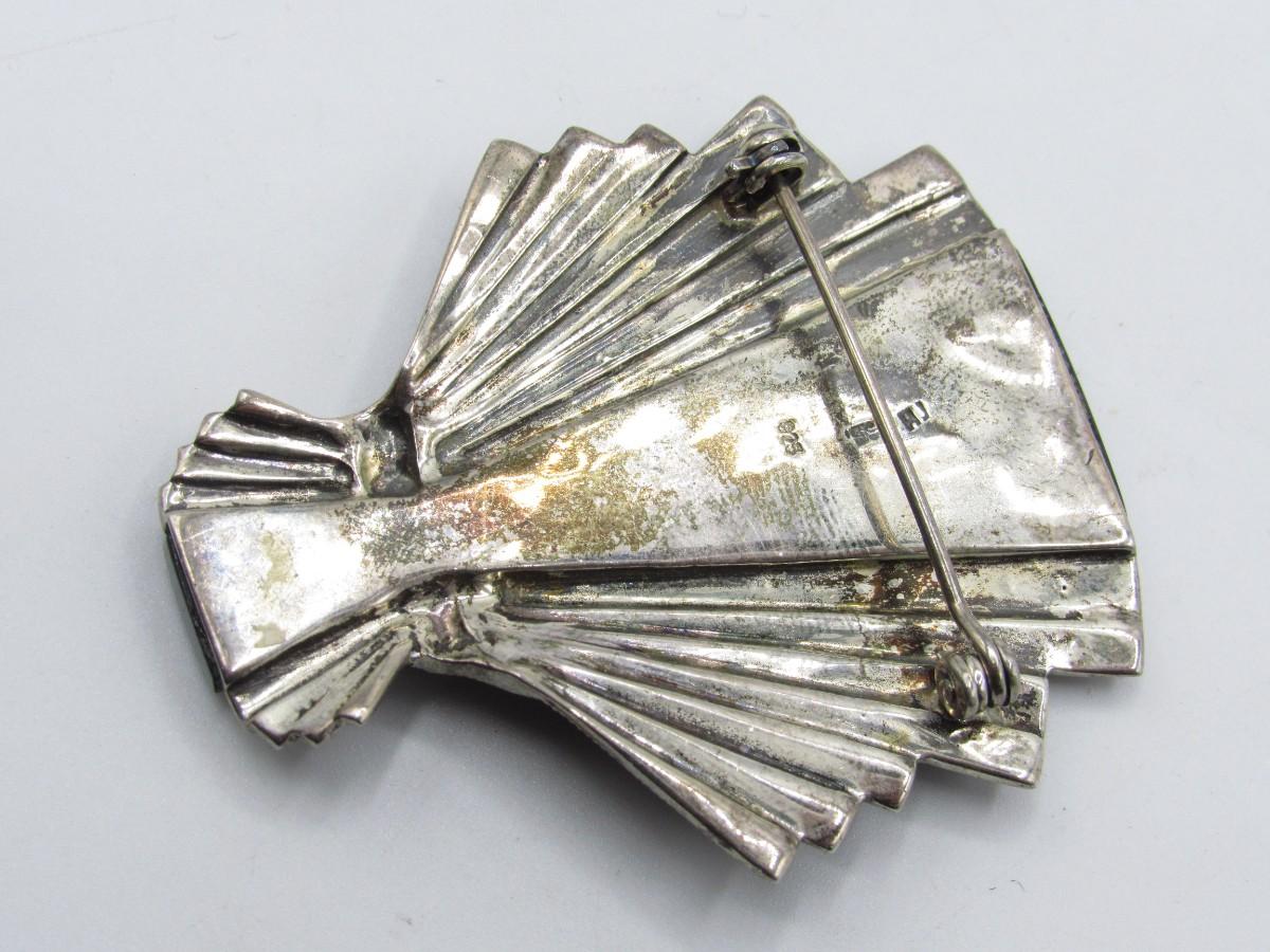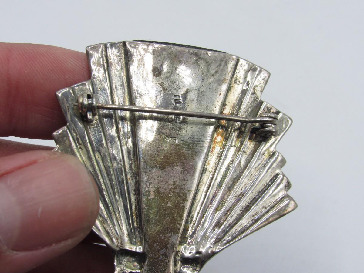 Silver and Black Lacquered Bejeweled Brooch Pin Costume Jewelry