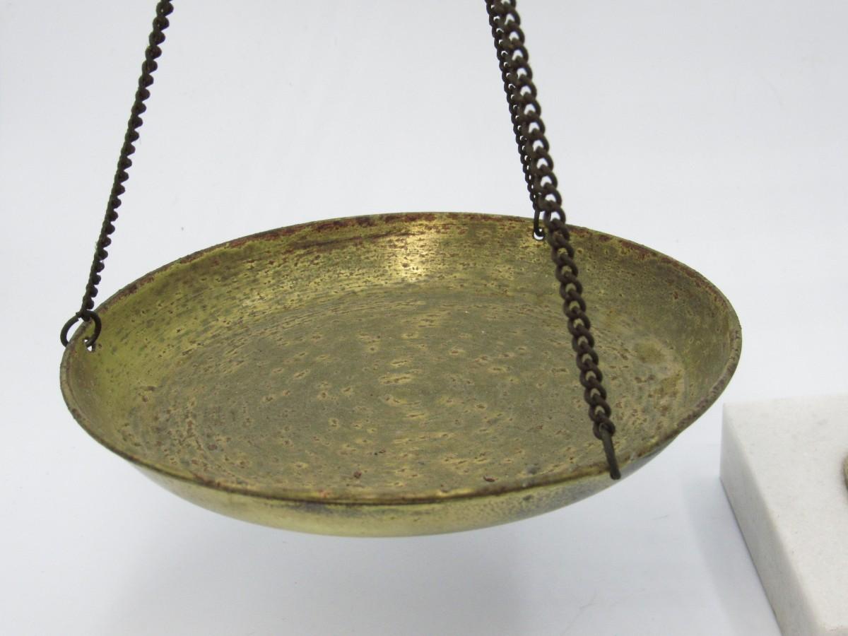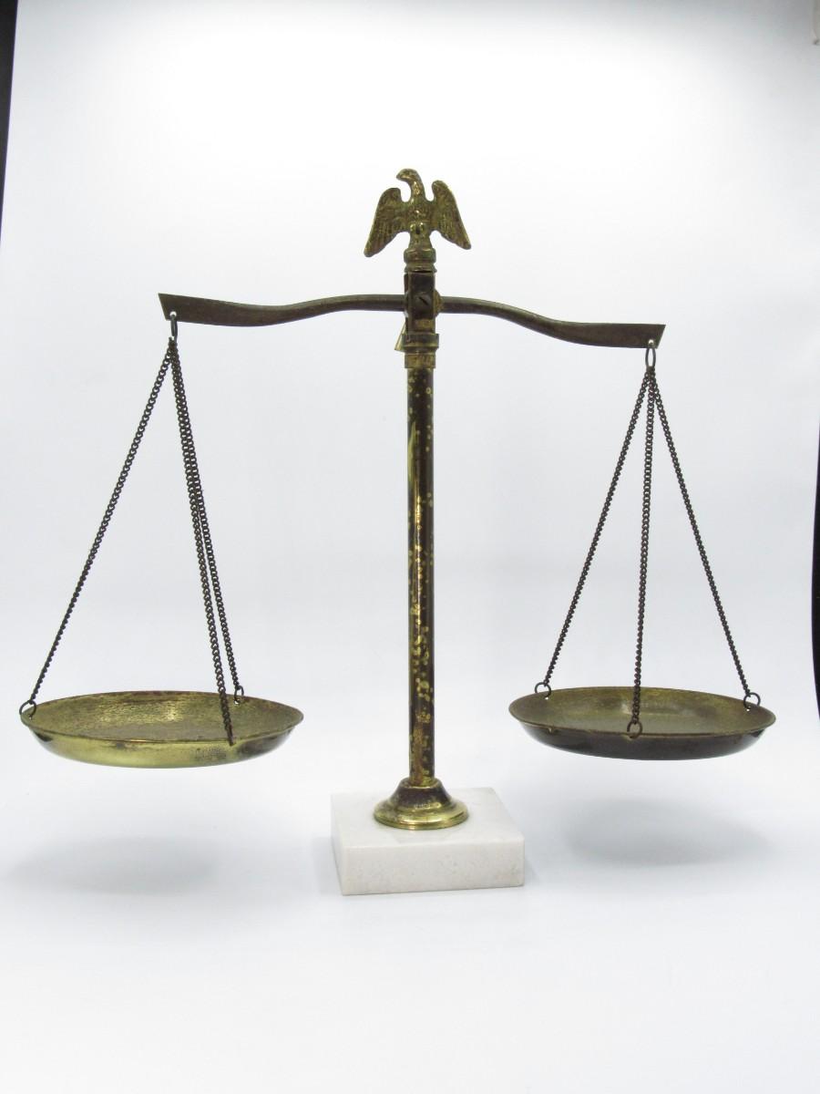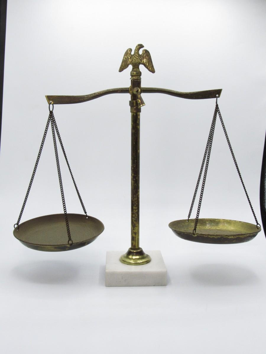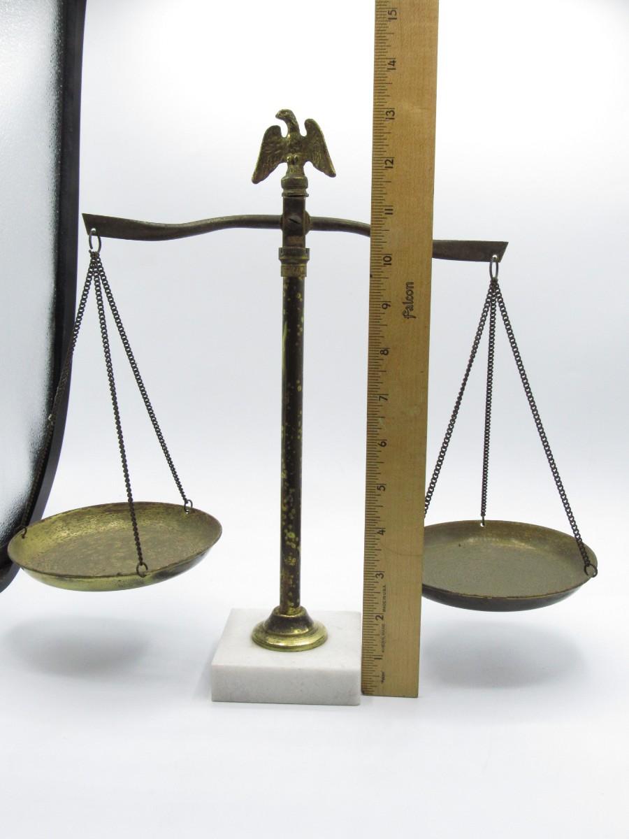 Vintage Brass Balance of Justice Scale Eagle on White Marble Base Japanese Made