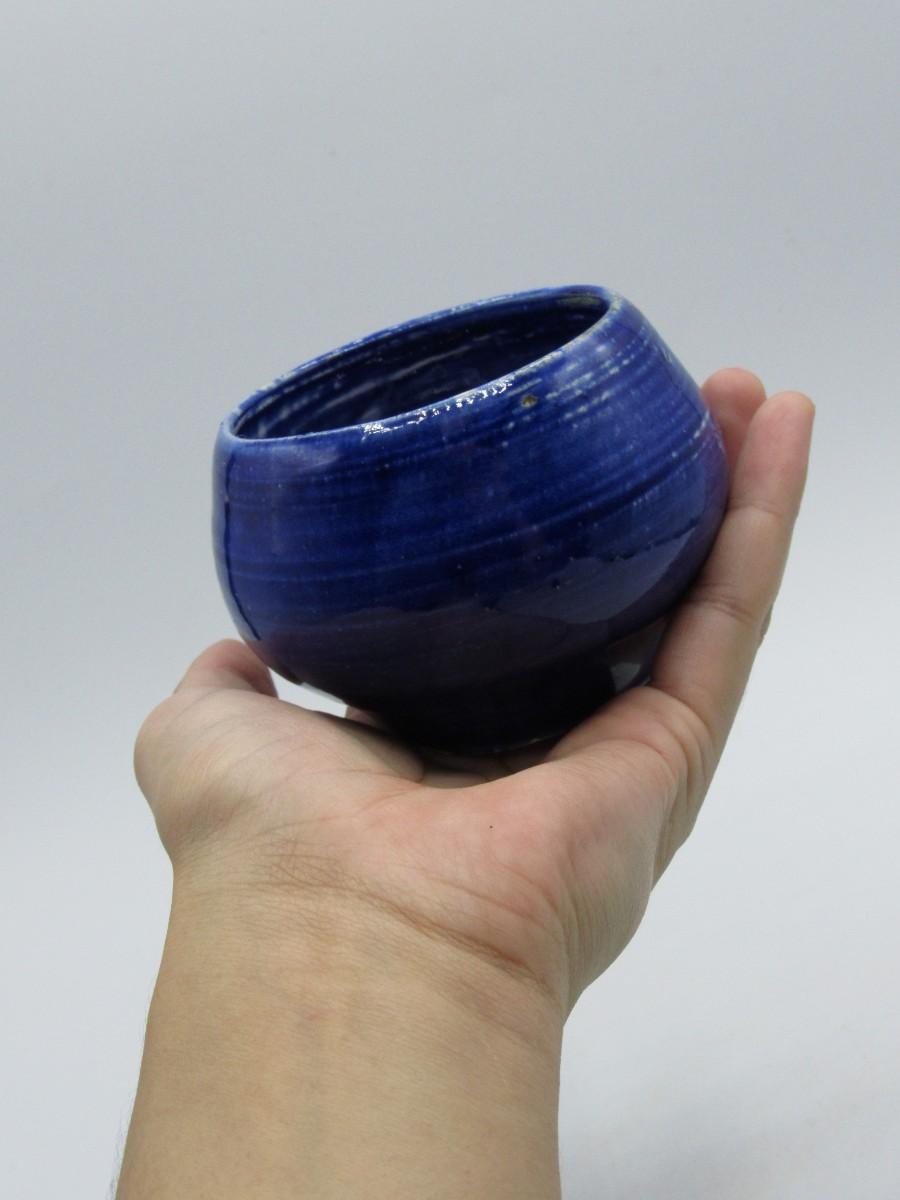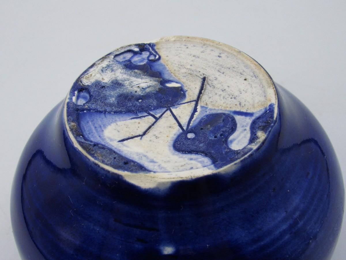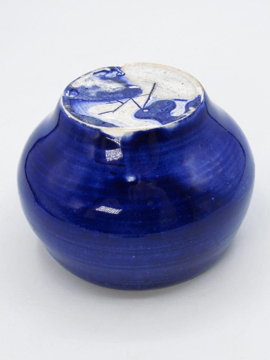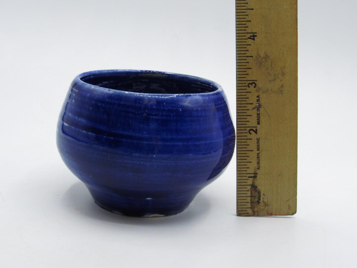 Retro Small Blue Pottery Art Ceramic Bowl with Signed Makers Mark