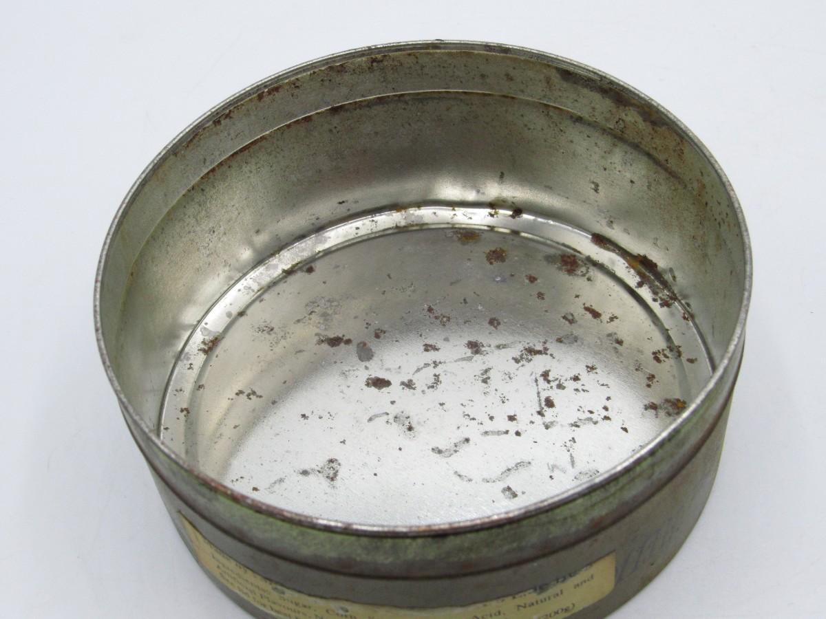 There is noticeable wear to the tin, but there is no significant damage and is in overall good collectible condition. Check pictures for more details.
