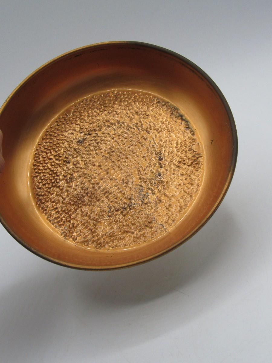 There is no damage to the dish and is in good displayable condition. The width of the dish is around 6 inches in diameter, check pictures for more details and sizing.