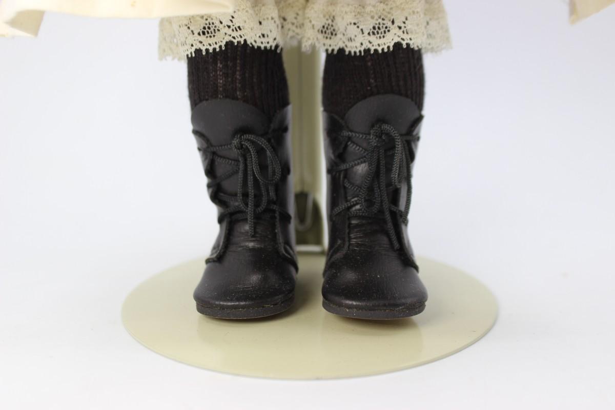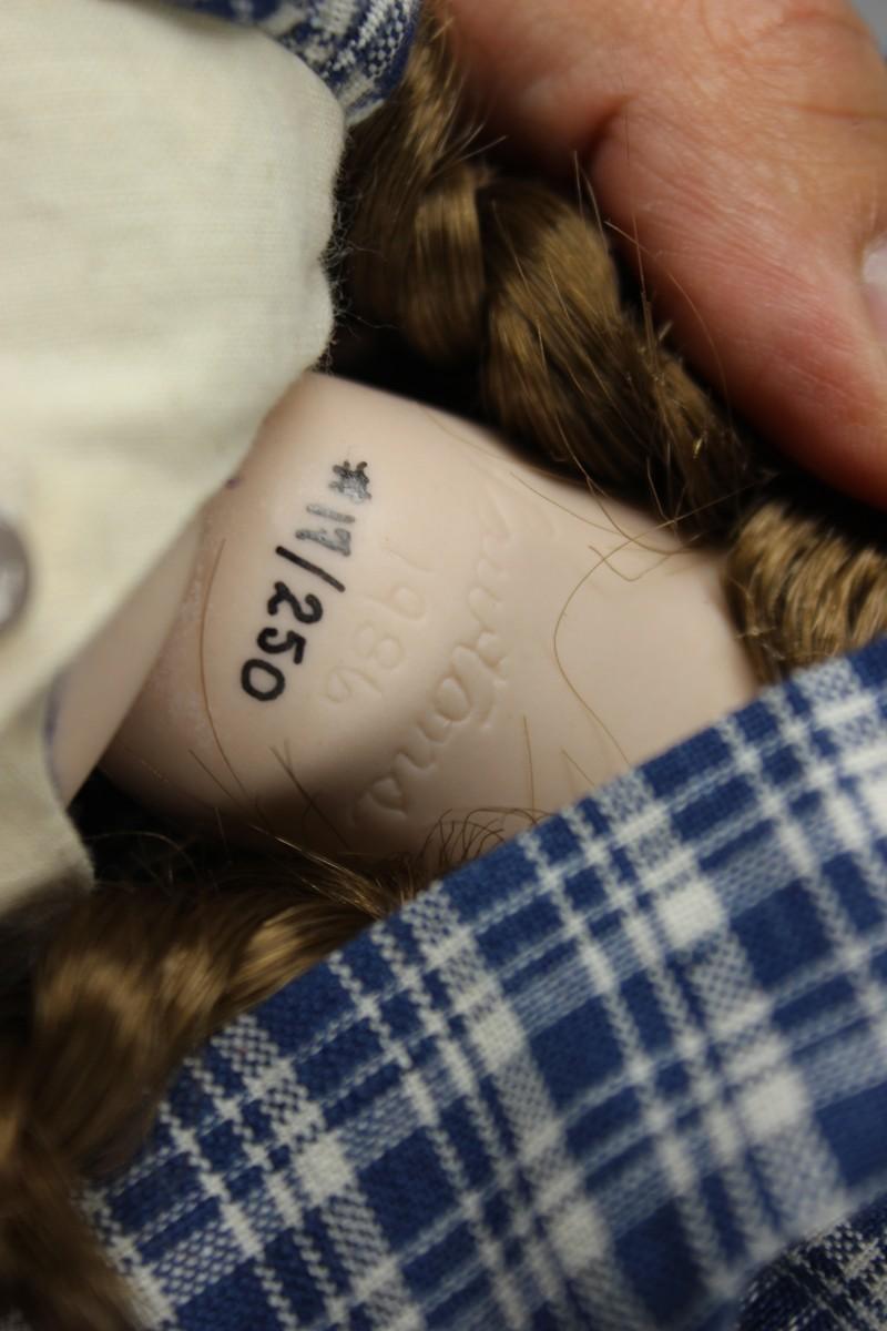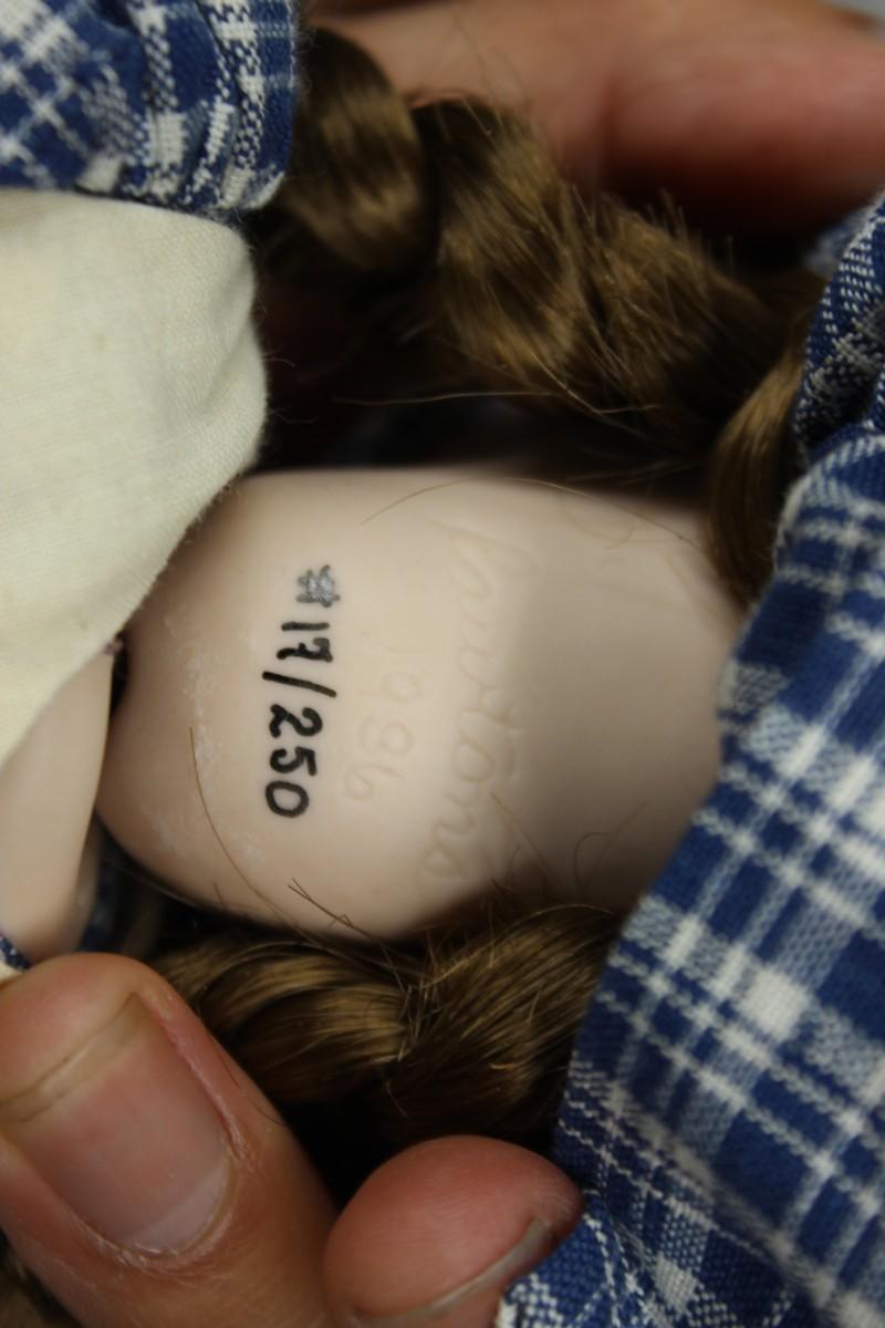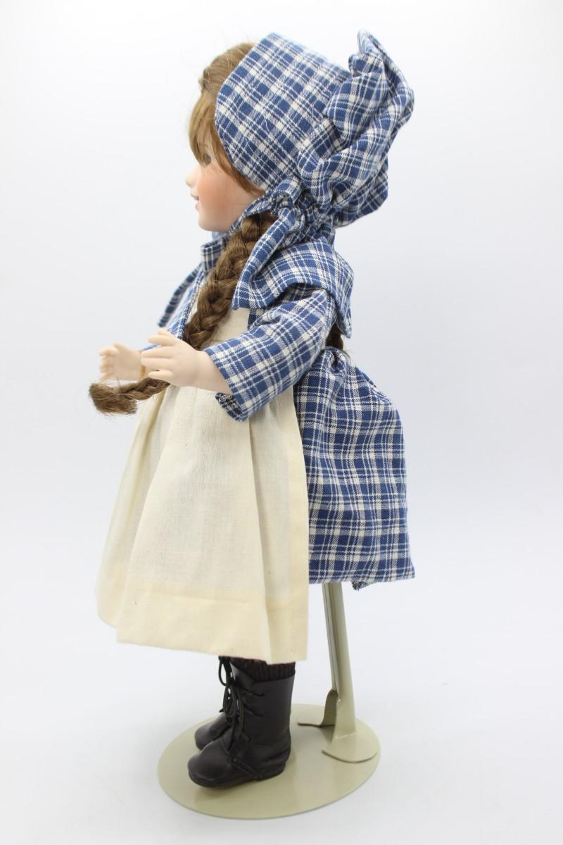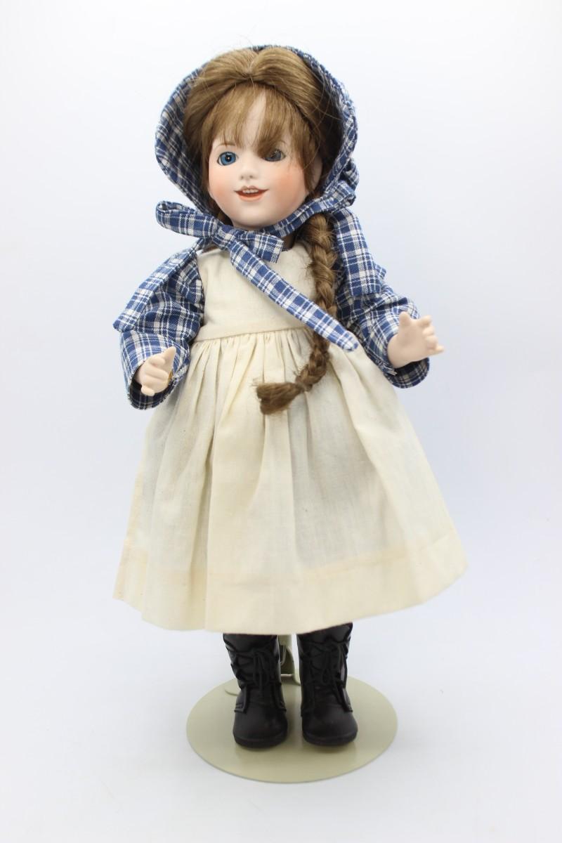 Vintage Doll Plaid top and bonnet cream jumper large curl porcelain face