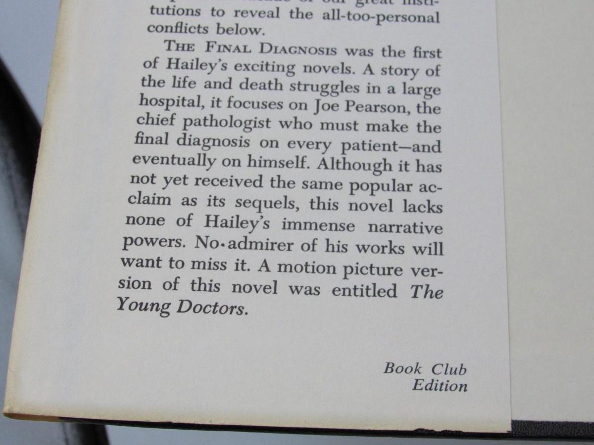The Final Diagnosis Arthur Hailey A Novel About a Hospital Book Club Edition Vintage Book
