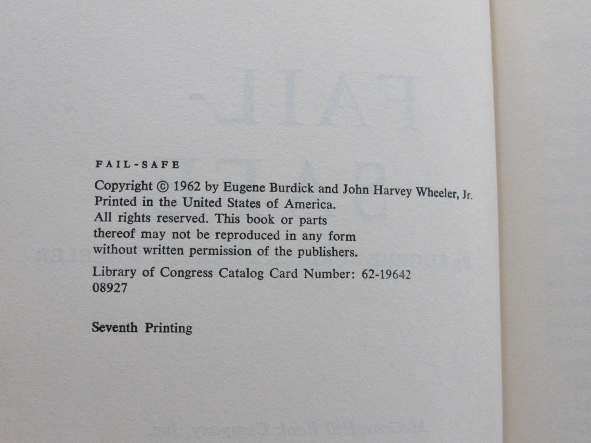 Fail-Safe Book of the Month Club Selection Hardcover Thriller Book Seventh Printing
