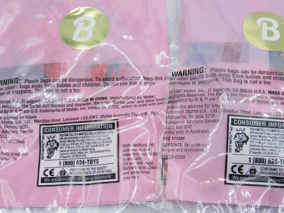 Retro Pair of Fashions of Avon Barbie Mattel Ski Outfit & Metallic Party Dress