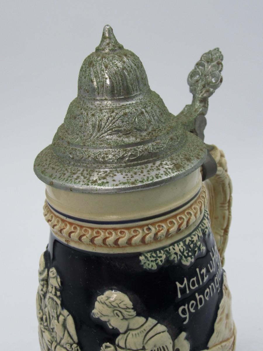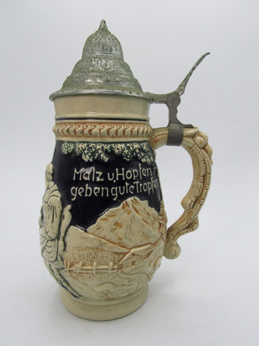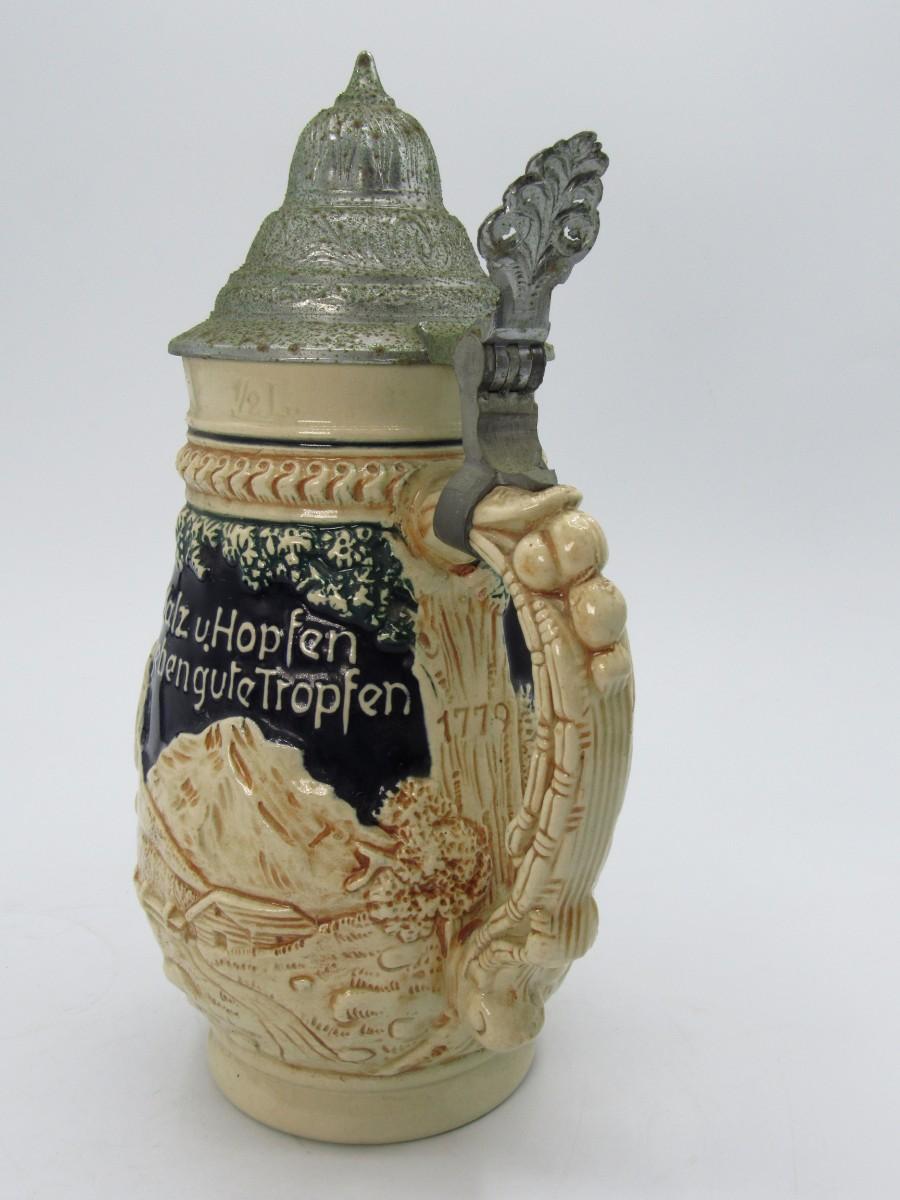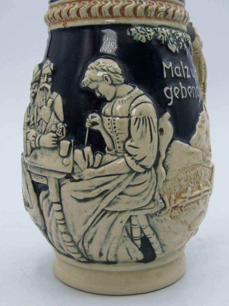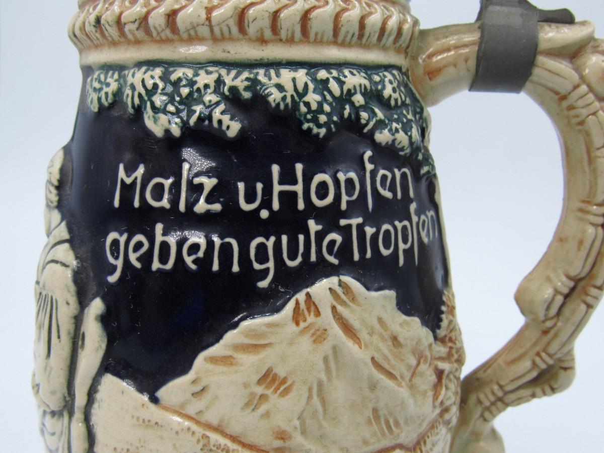 Vintage West German Lidded Relief Beer Stein Old World Malt & Hops Rhyme Barware