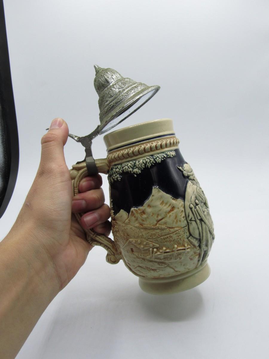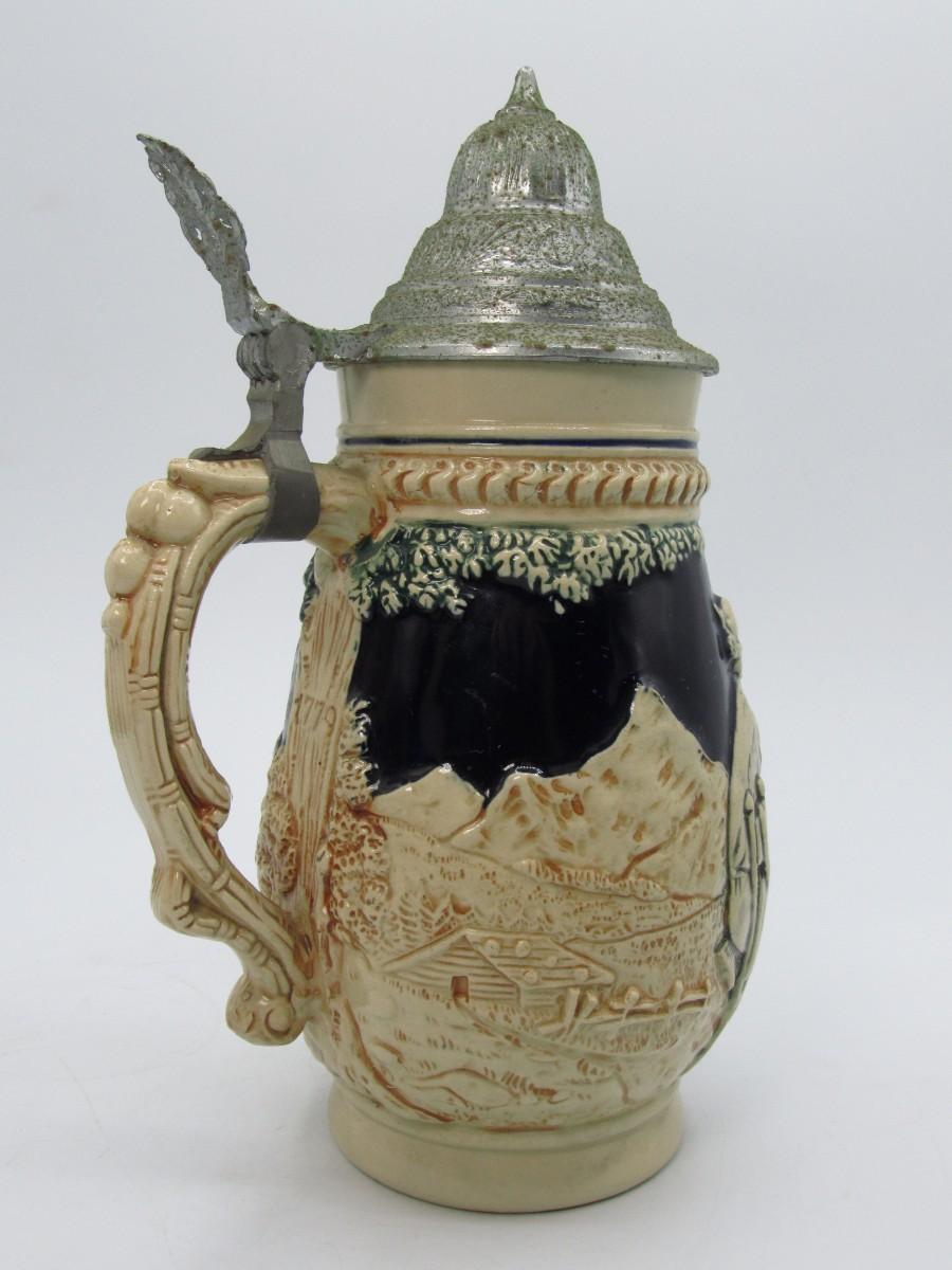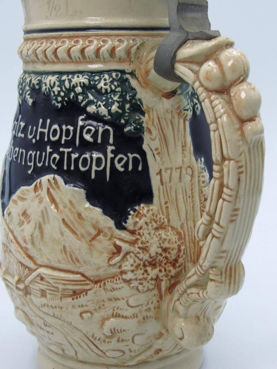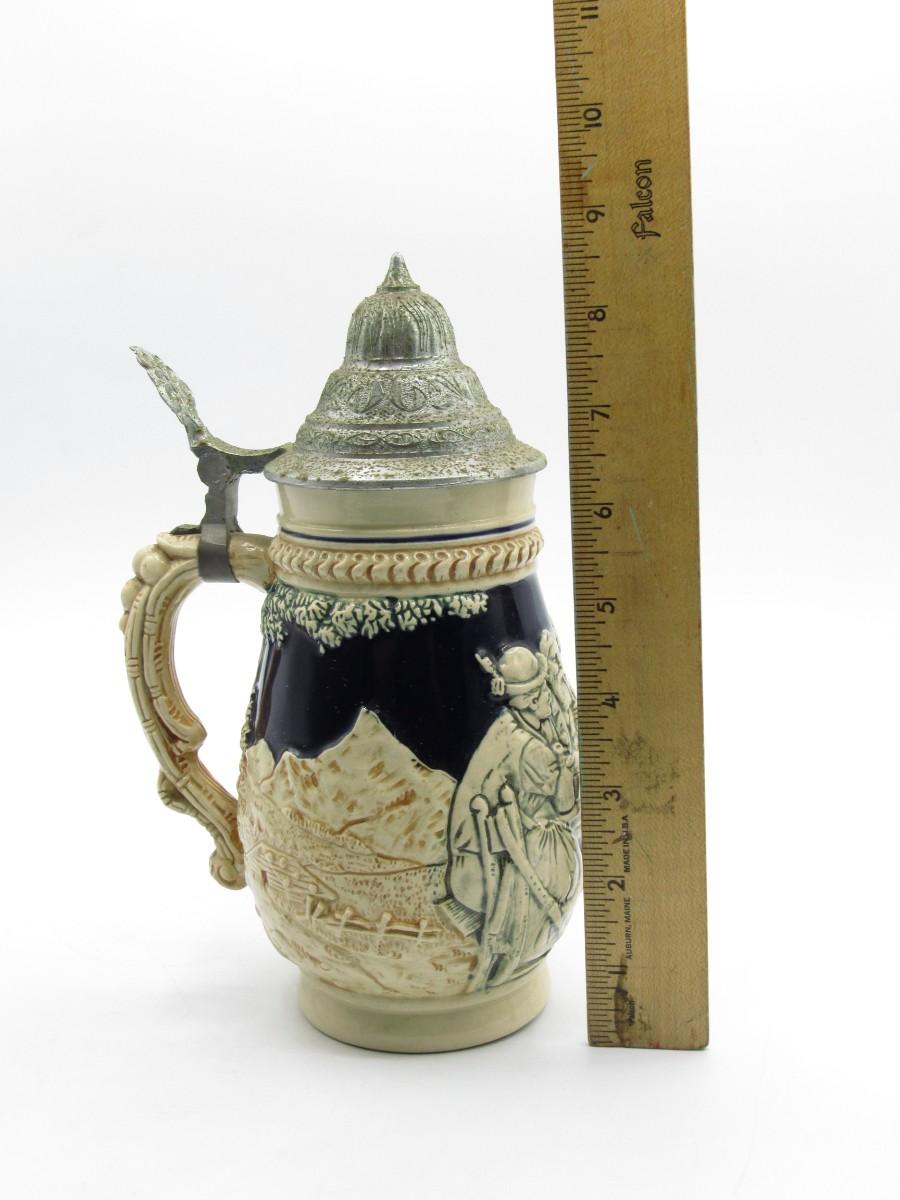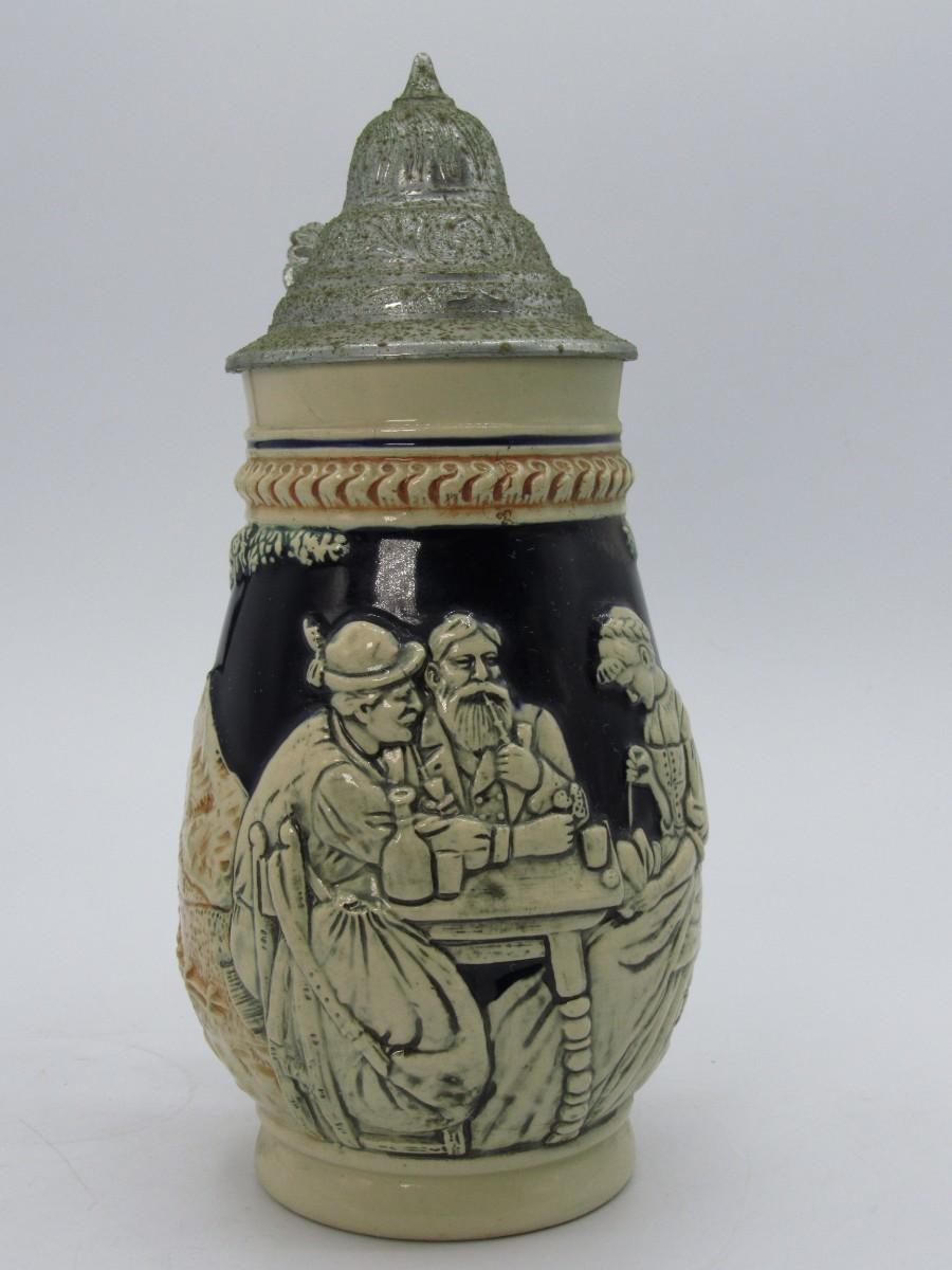Vintage West German Lidded Relief Beer Stein Old World Malt & Hops Rhyme Barware