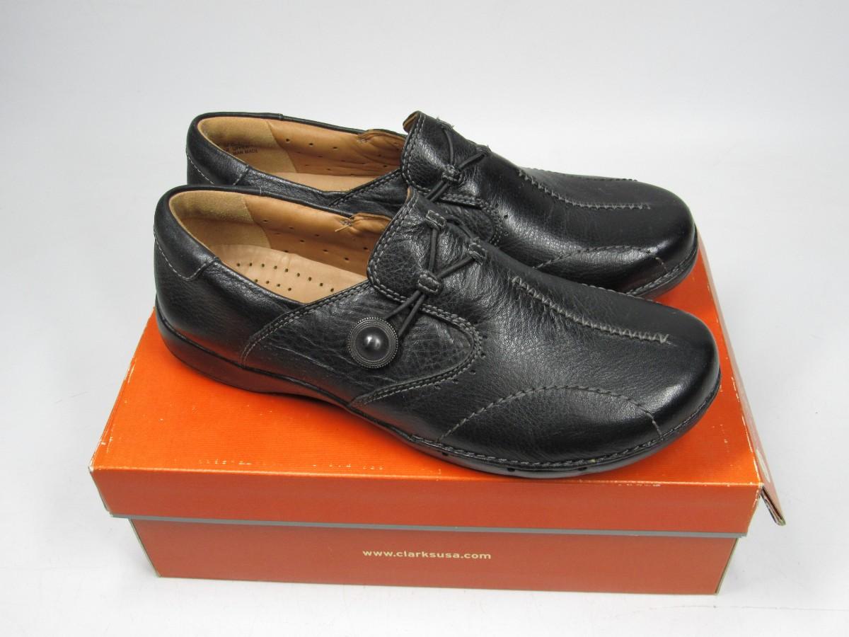 Unstructured Clarks Black Lea Slip Ons Womens 8 1/2 Comfy Walking Shoes