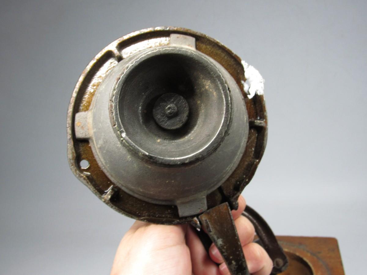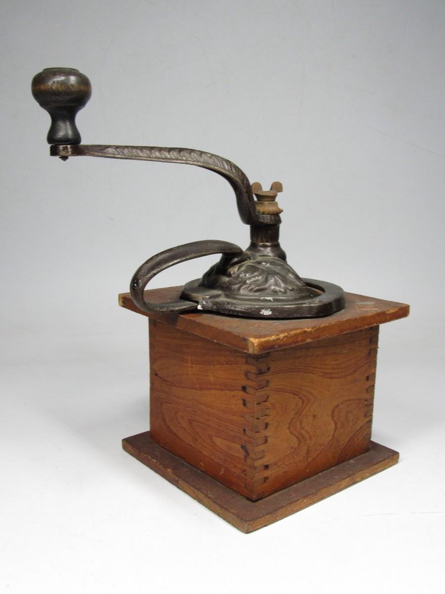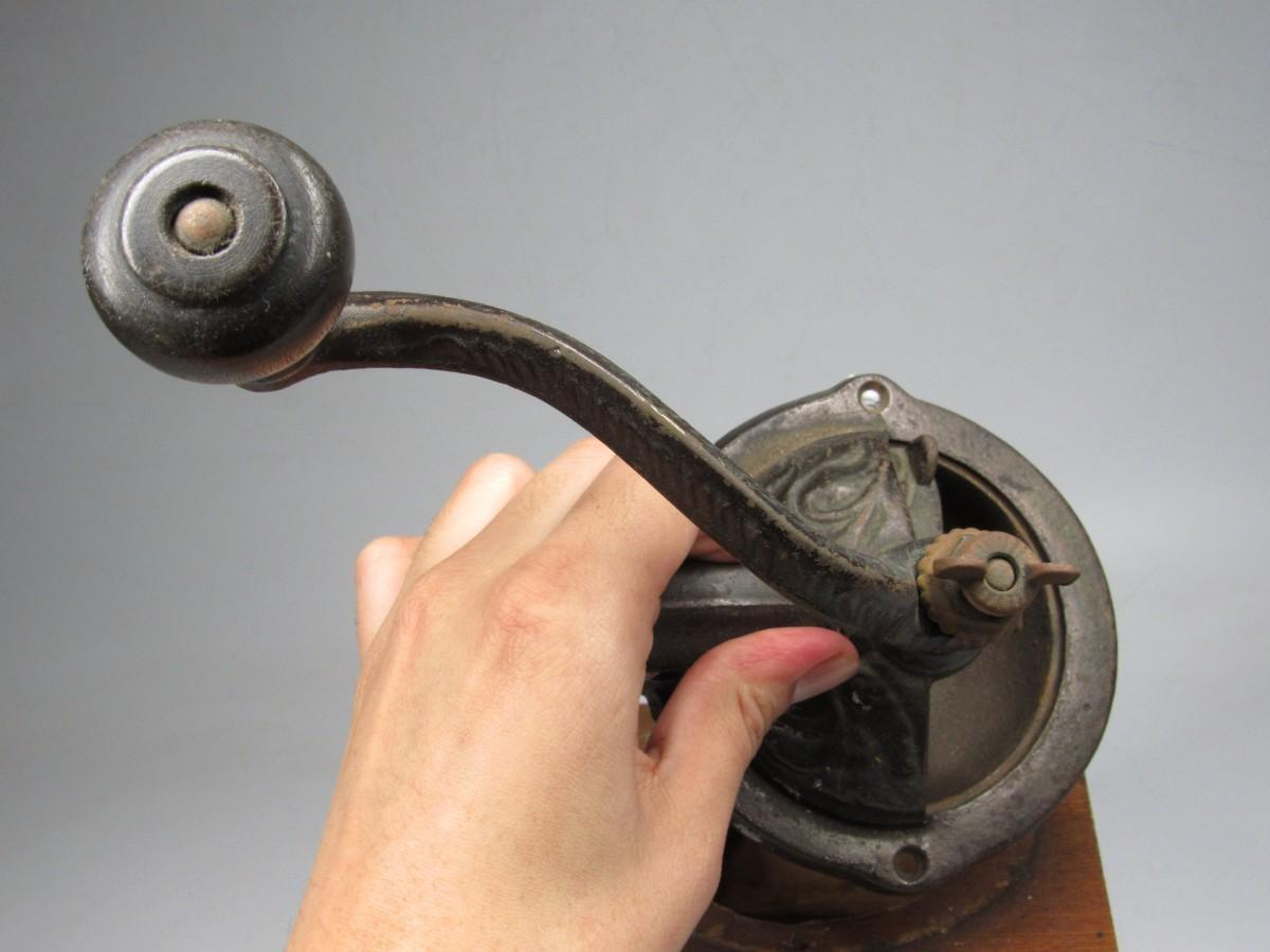 The grinder is loose and needs to be screwed onto the wooden base. There is no damage and is in overall good collectible or useable condition. Check pictures for more details.