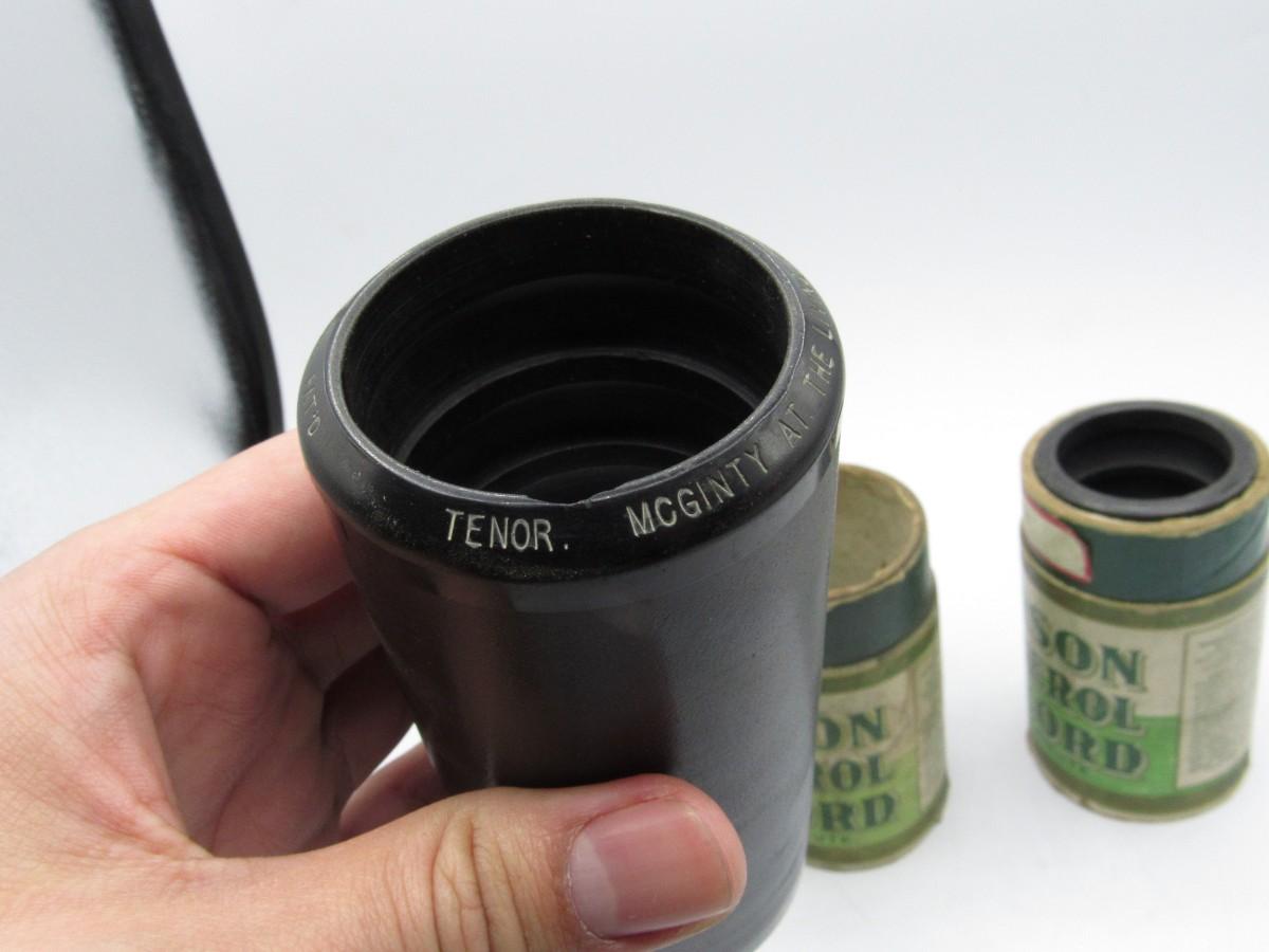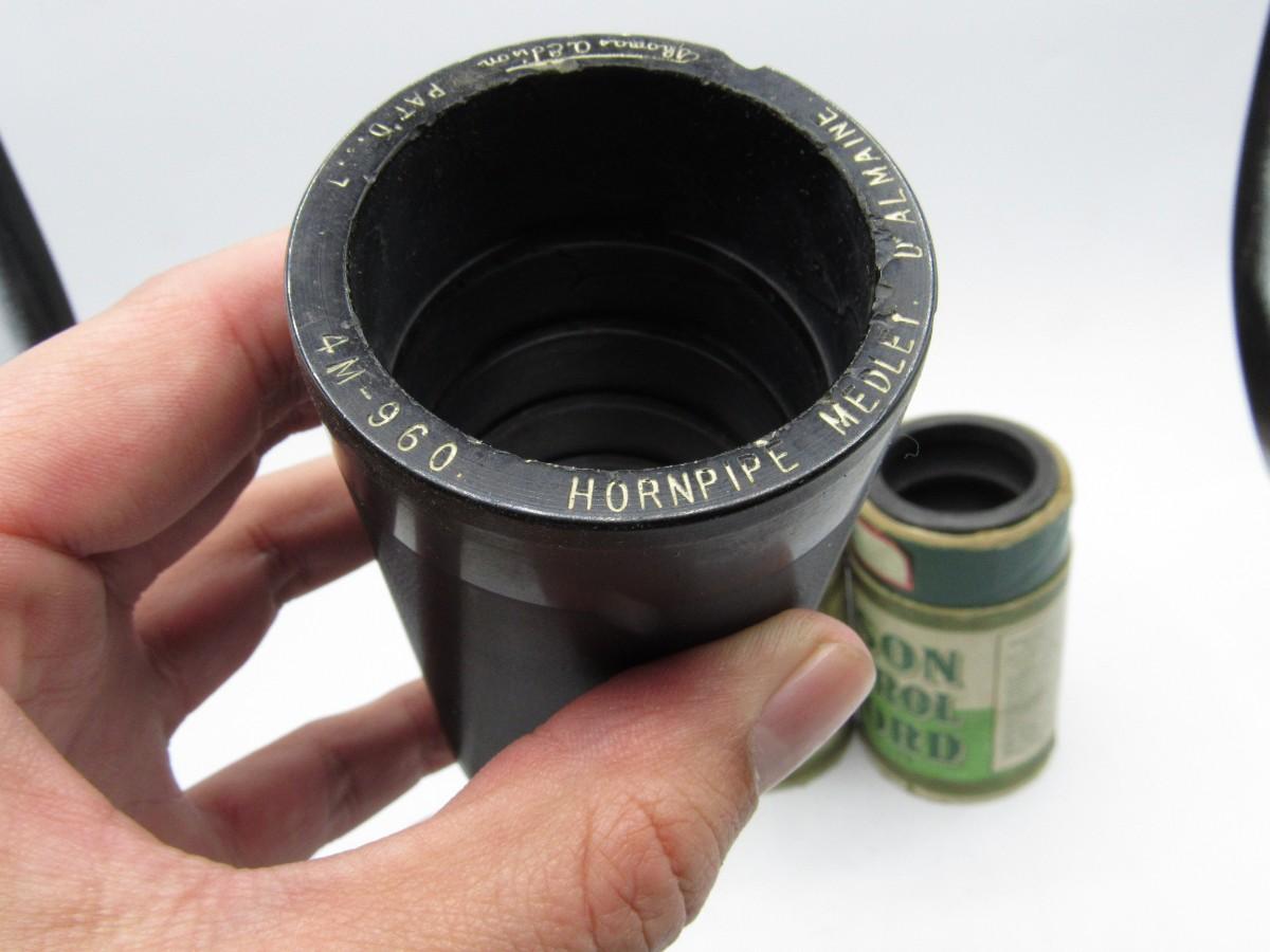 There is some light chipping to Hornpipe Medley. There is no signifncant damage to the wax cylinders and is in overall good collectible condition. One wax cylinder does not have a title, the other title is McGinty at the Living Pictures.
