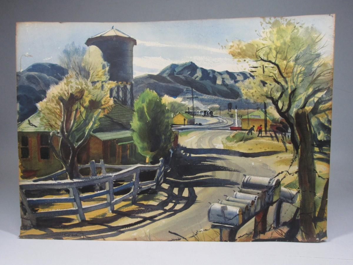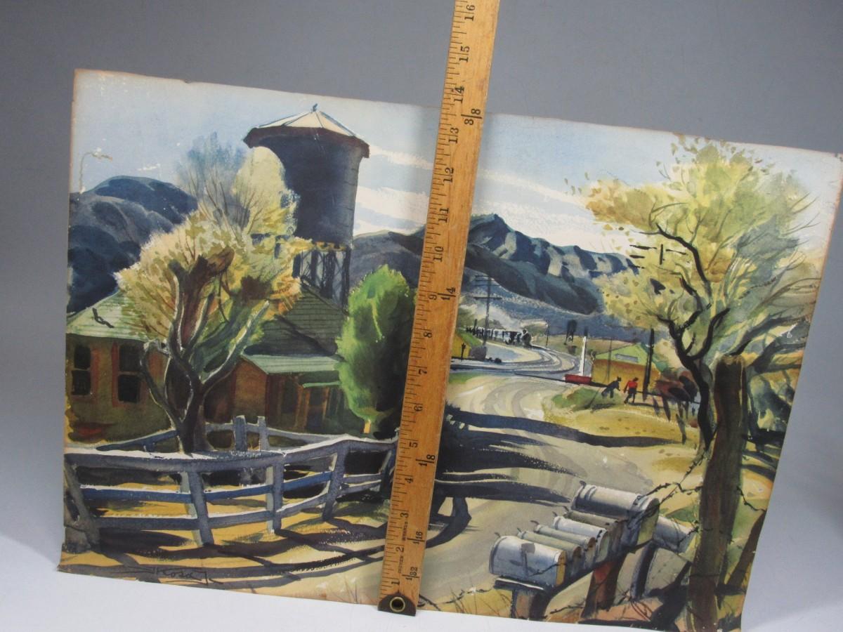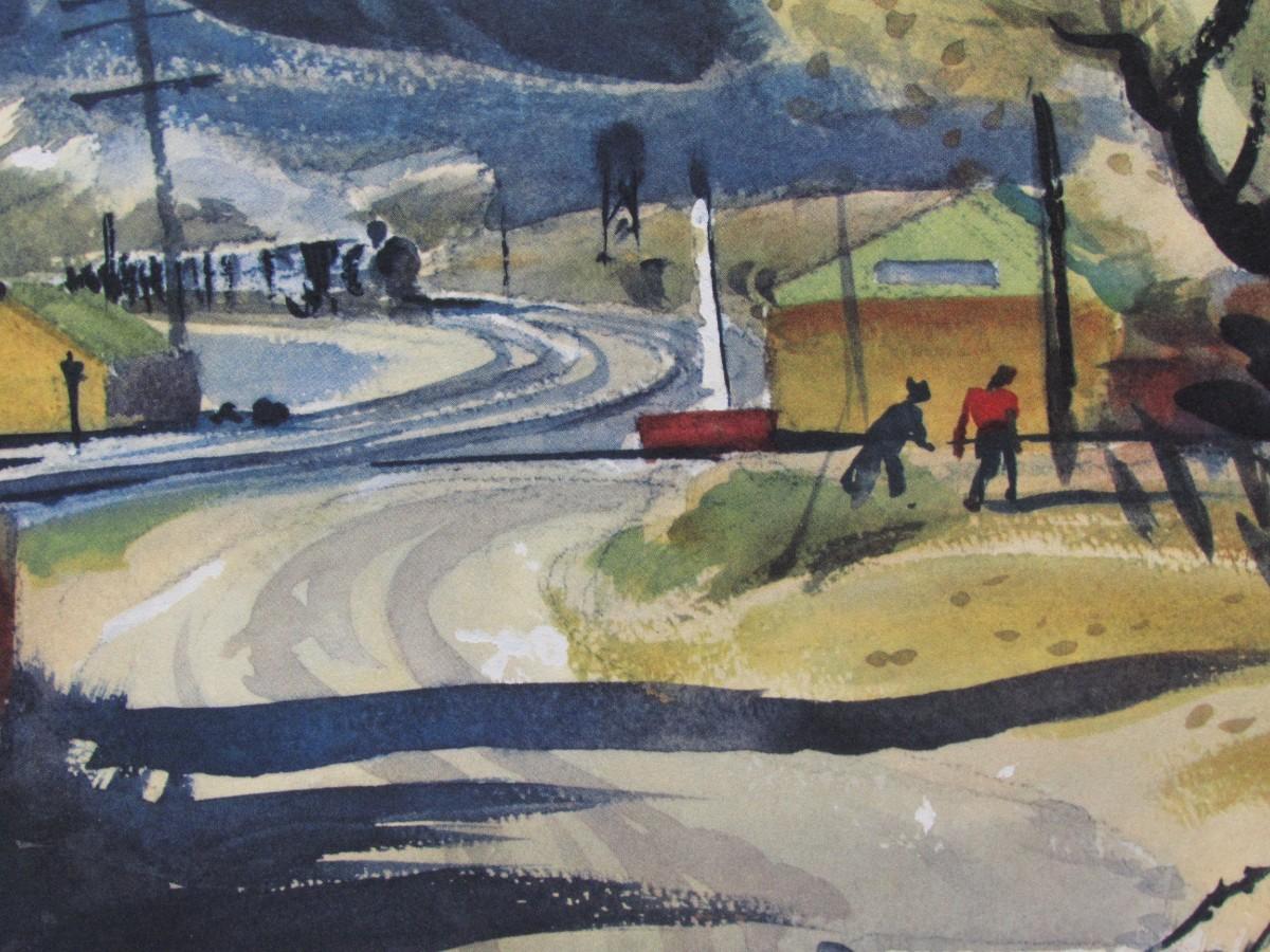 Artwork Watercolor Lithograph Print signed Emil Kosa Jr. California  Modernist "Junction at Acton"
