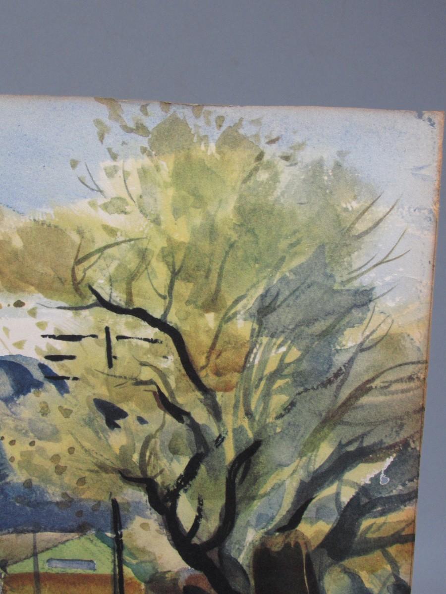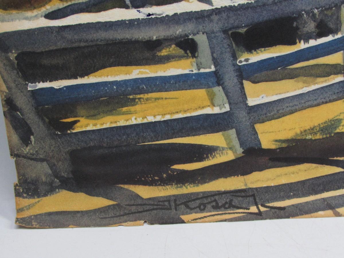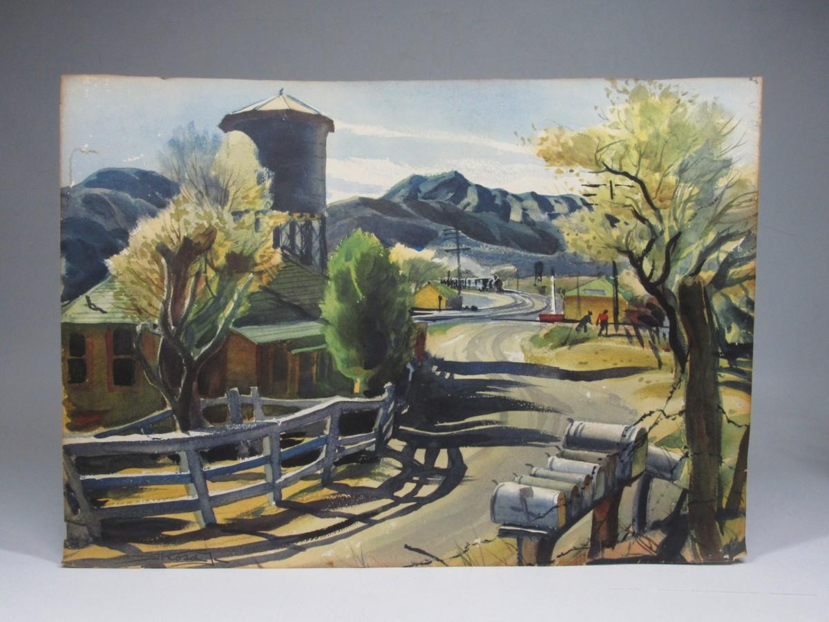 Artwork Watercolor Lithograph Print signed Emil Kosa Jr. California  Modernist "Junction at Acton"
