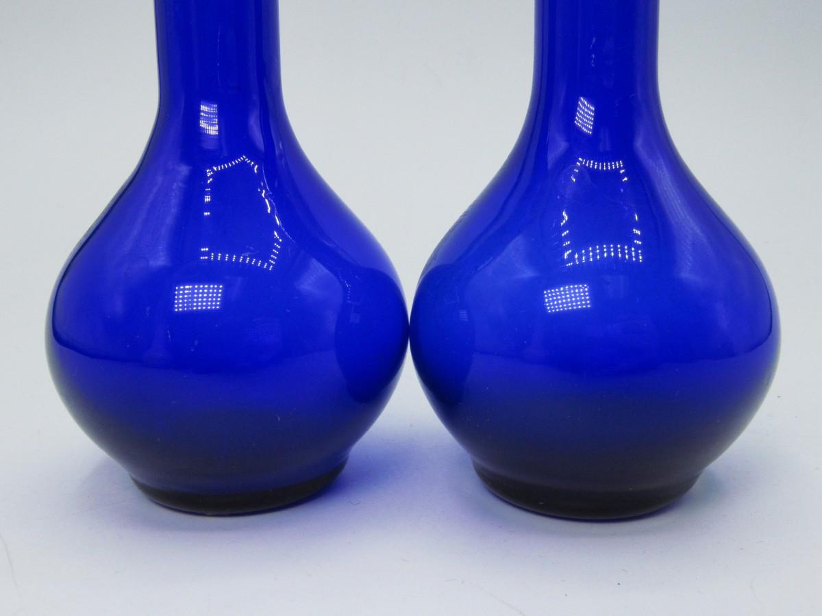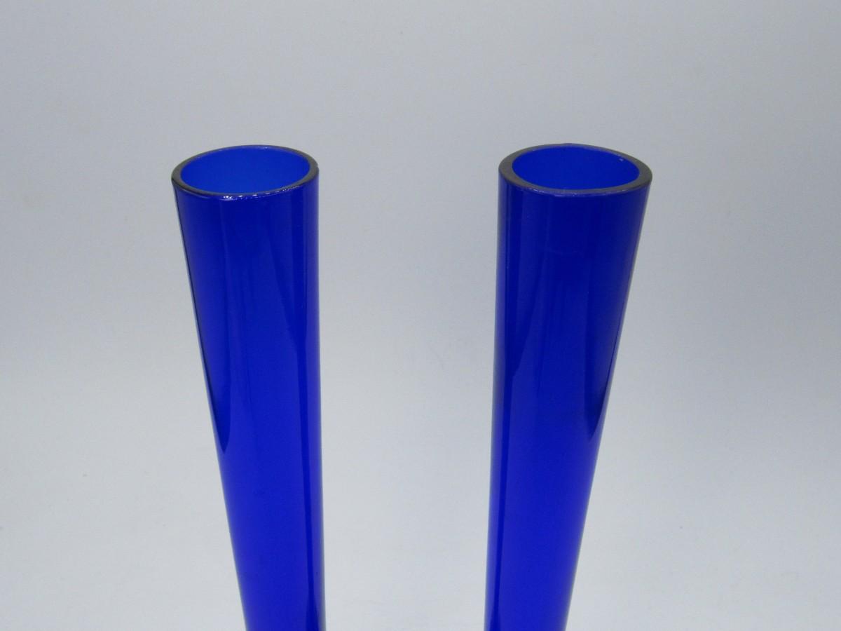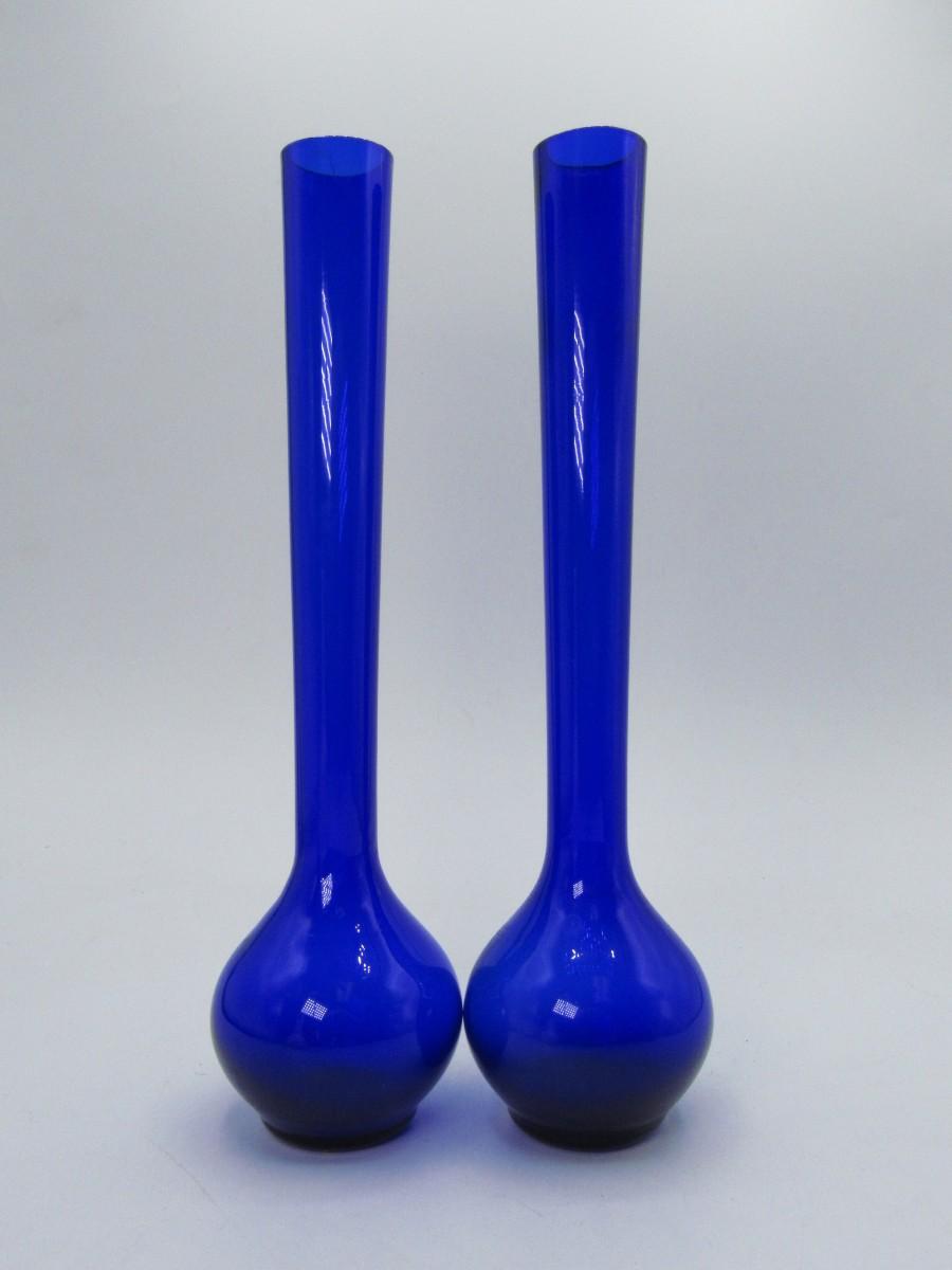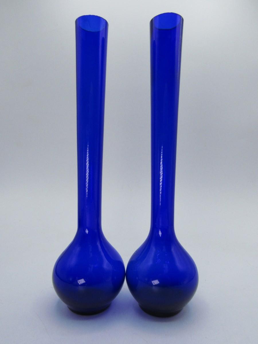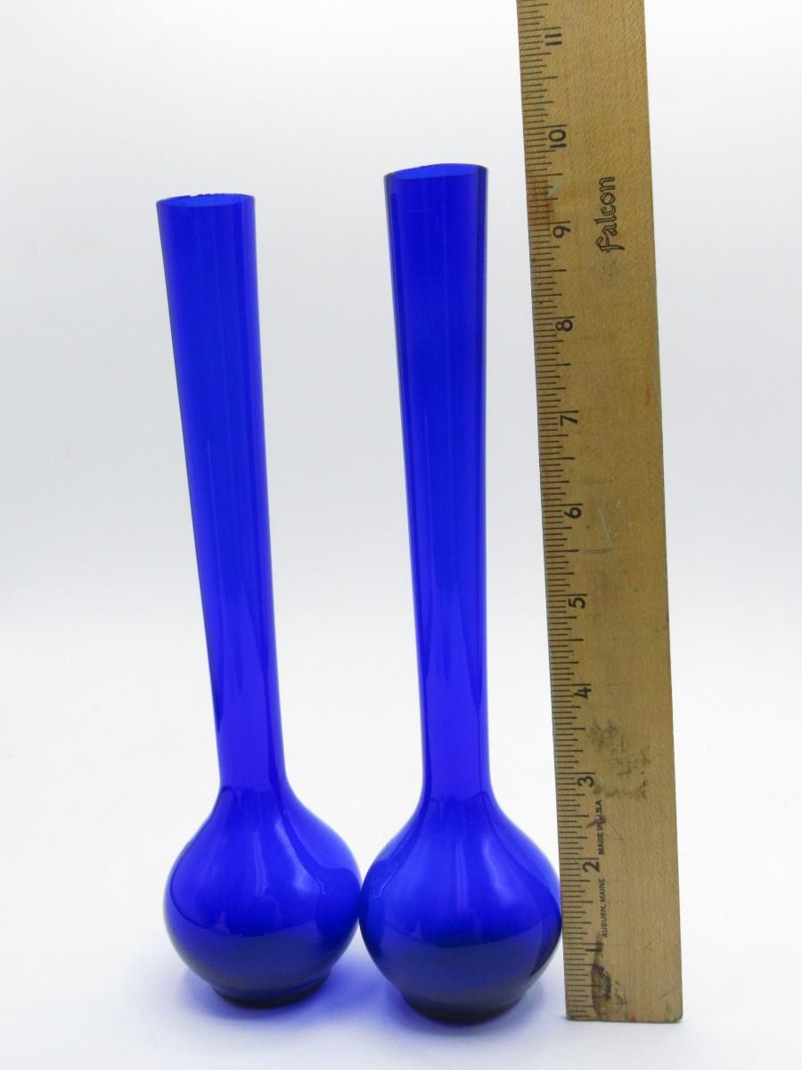 Pair of Vintage Blue Glass Long Neck MCM Bud Flower Vases