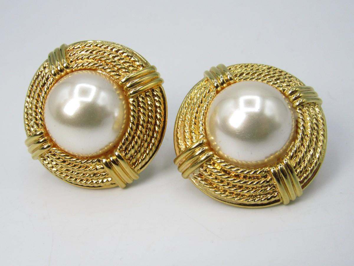 Vintage costume Jewelry gold-tone Pearl earrings (clip-on)