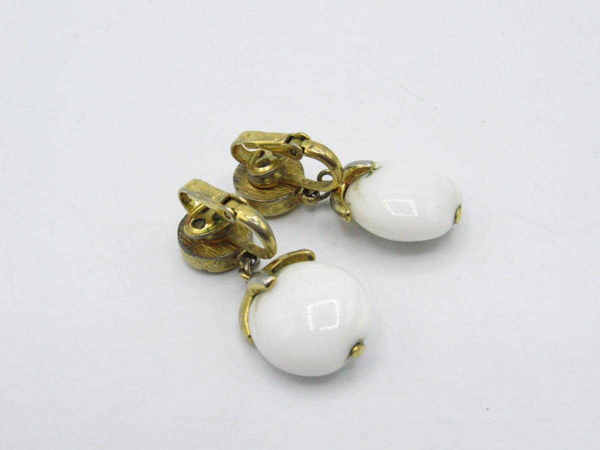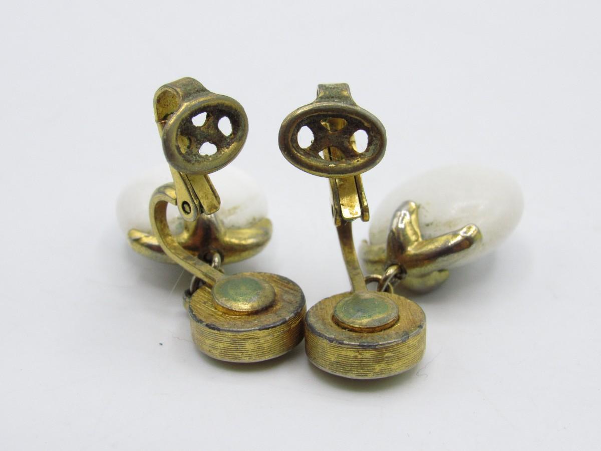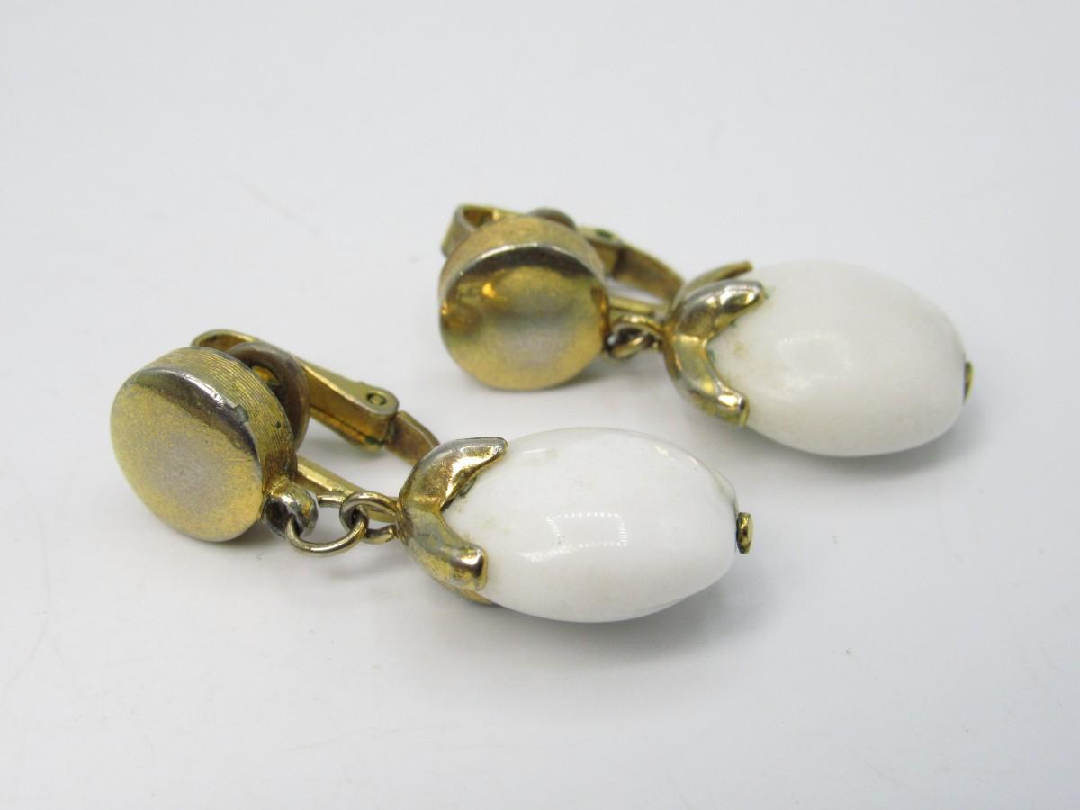 Vintage Jewelry Earrings - white and gold tone clip-on