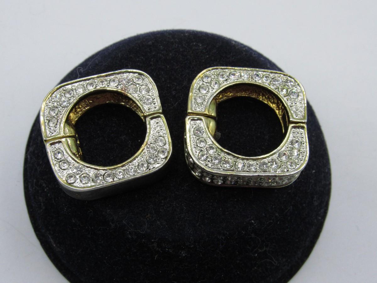 Vintage Costume Jewelry Clip-on Gold-tone Rhinestone Earrings