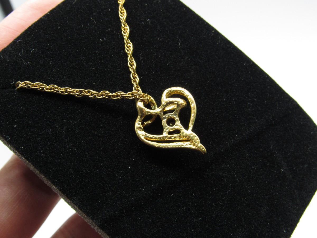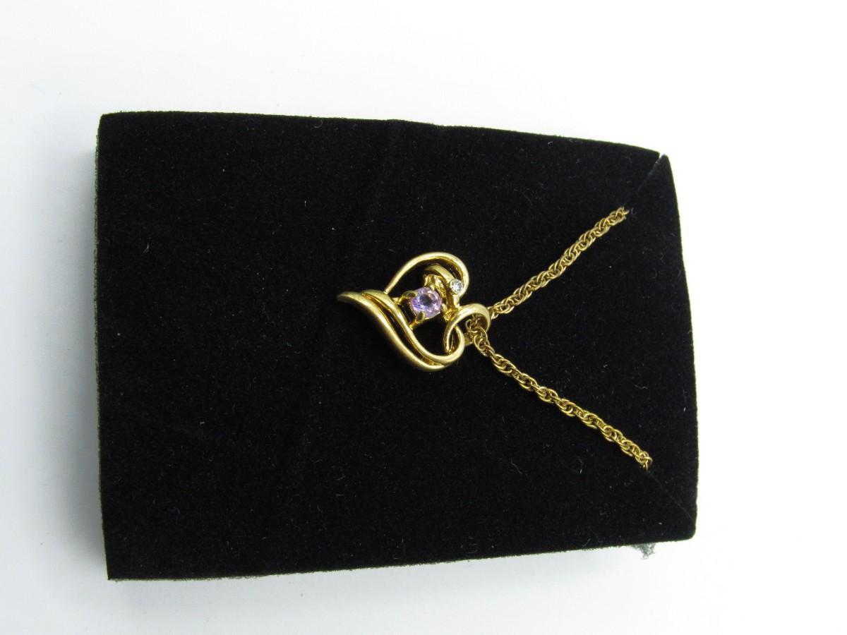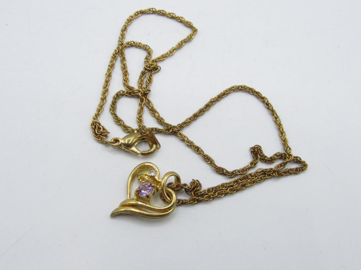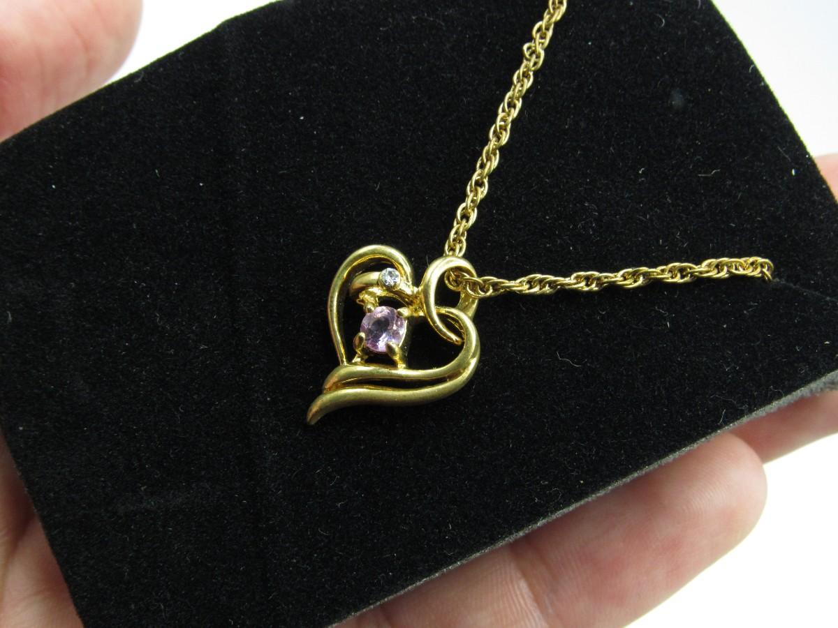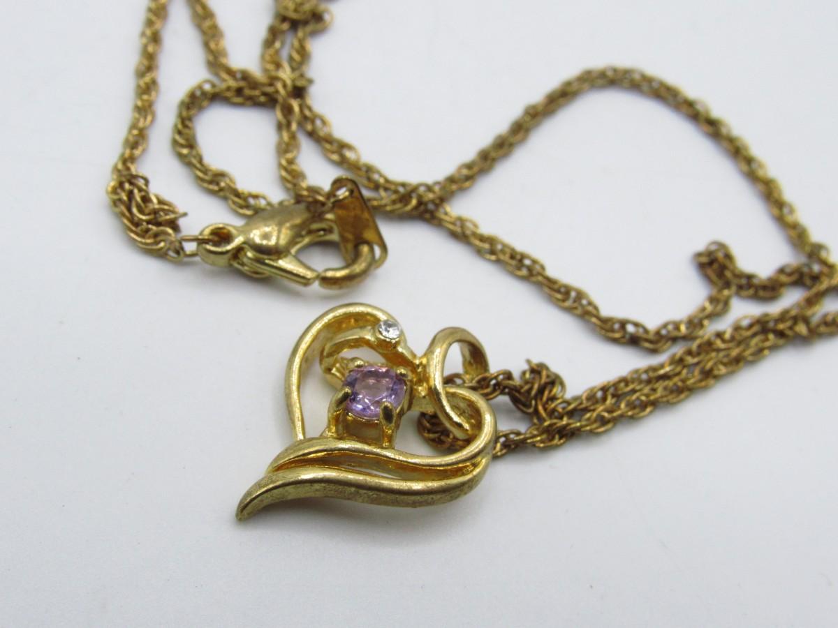 Vintage fashion Jewelry Gold-tone Heart pendant with Lavender stone w/ gold-tone chain