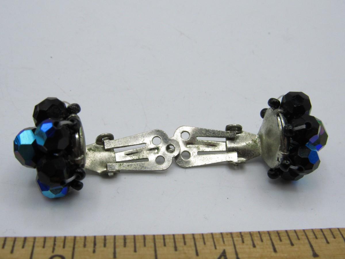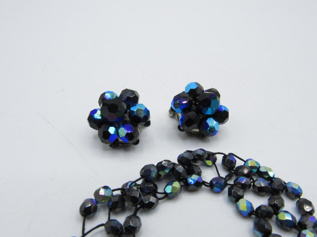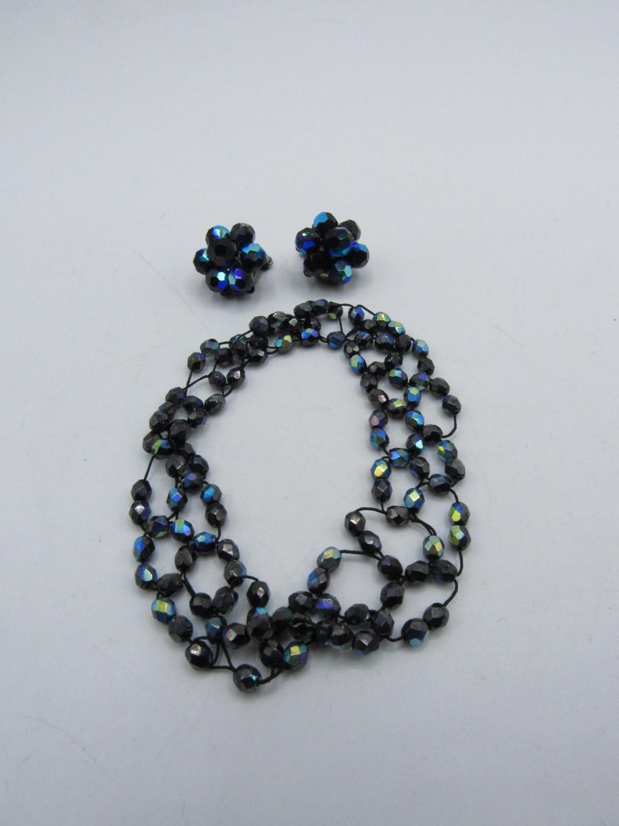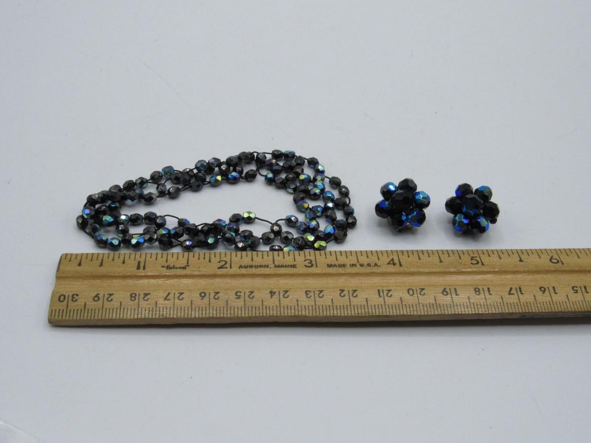 Choker Necklace & Earring Set Aurora Boreralis Carnival Glass Vintage Costume Beads Jewelry Clip-on style