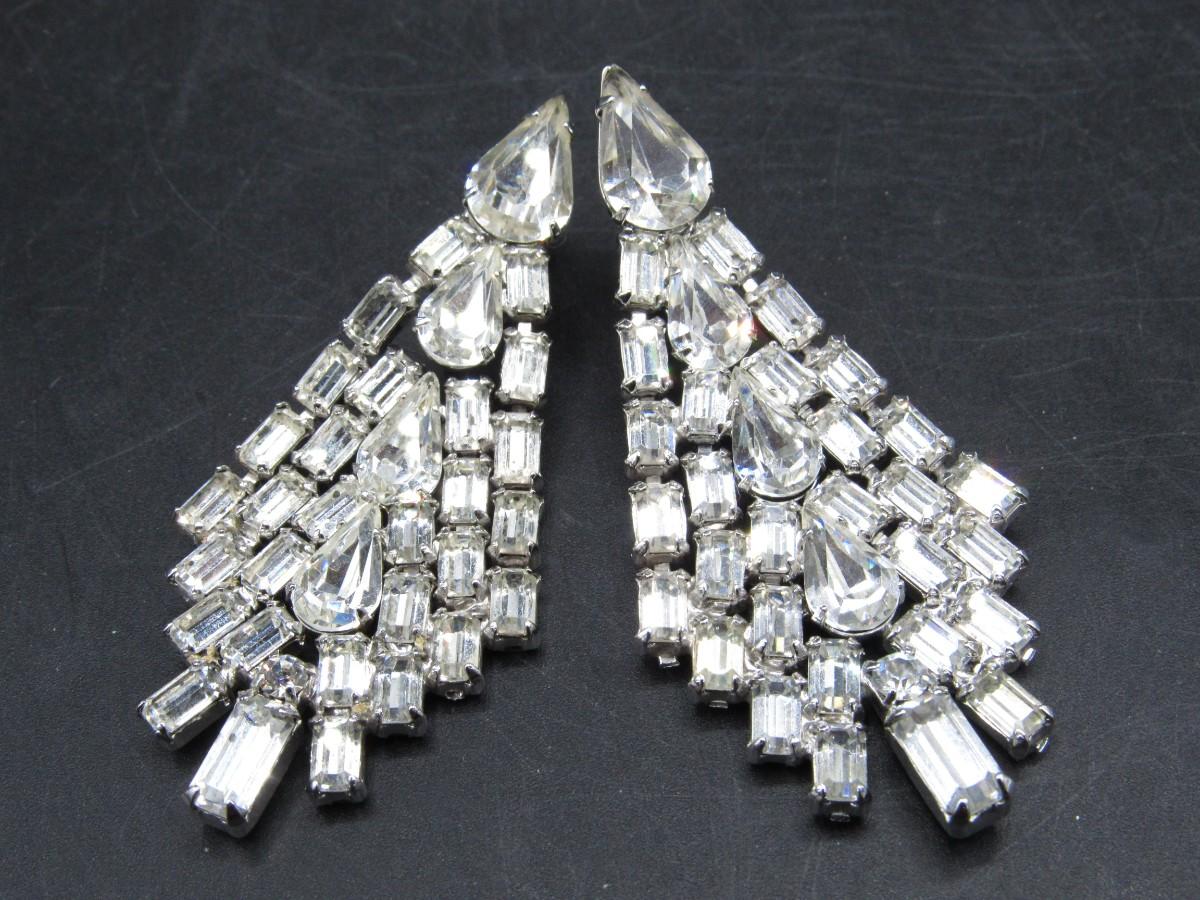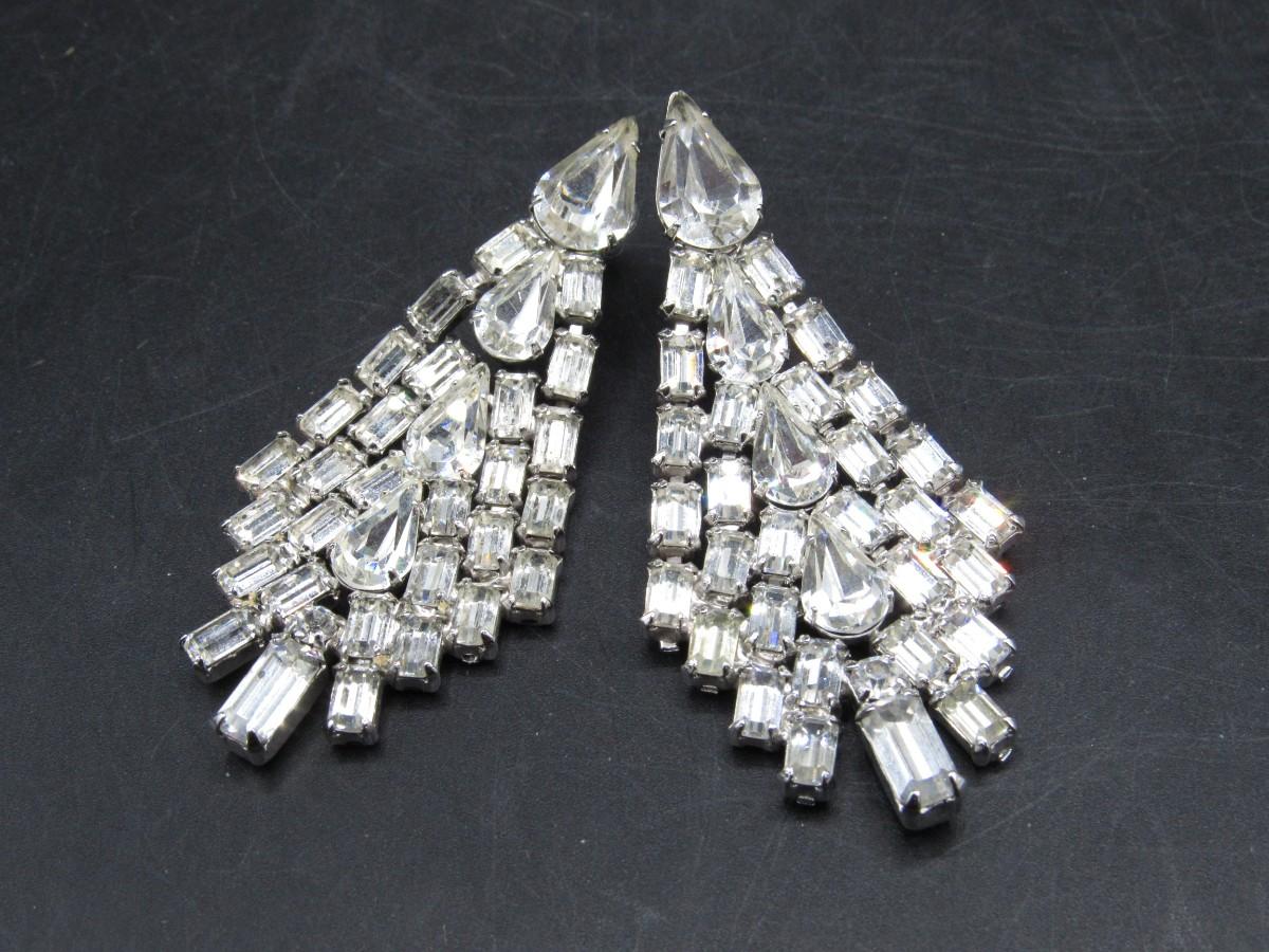 Dang;ong Rhinestone Clip-on Earrings Vintage Costume Jewelry