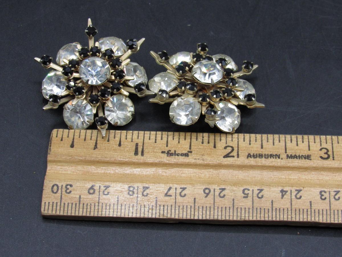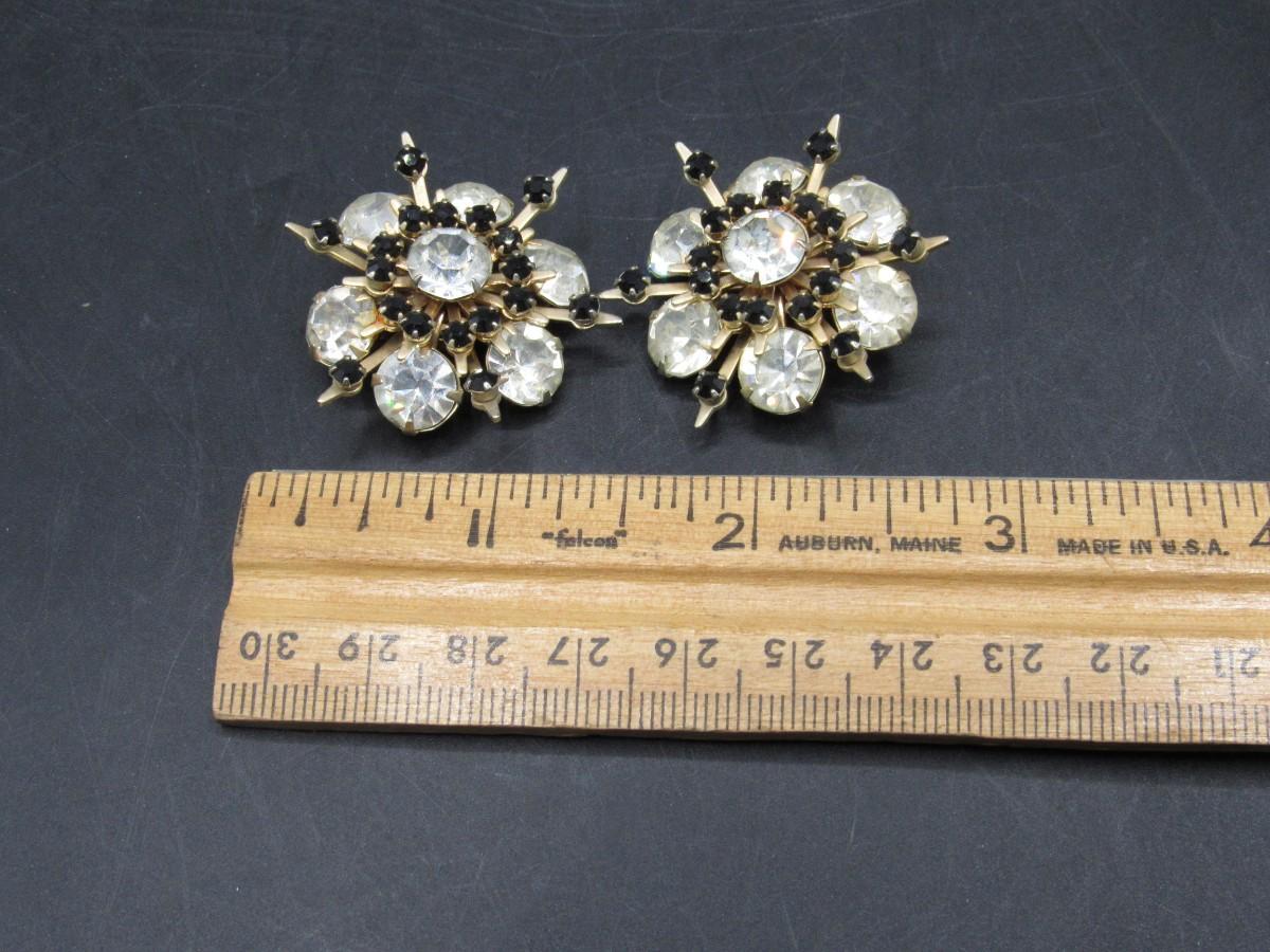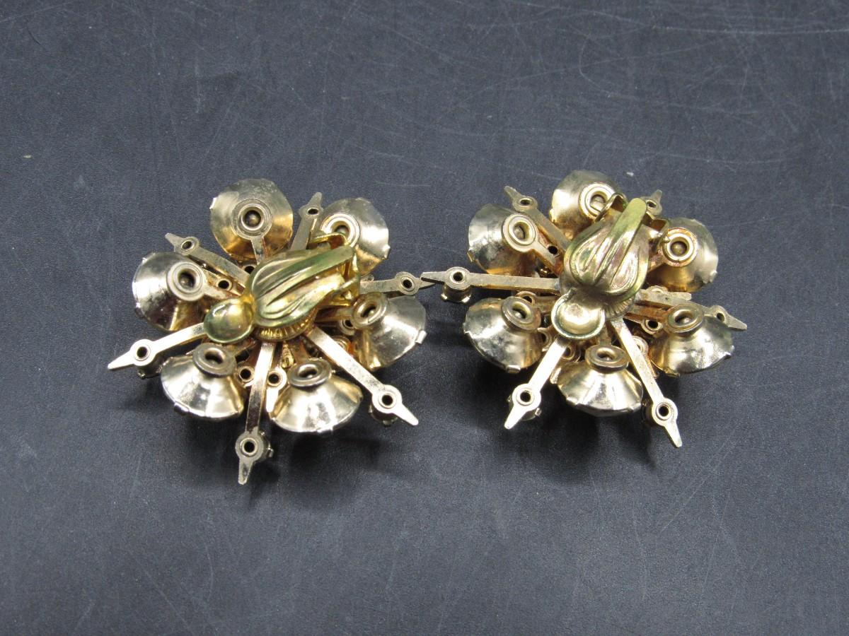 Rhinestone Flower Earrings Vintage Costume Jewelry Clip-on