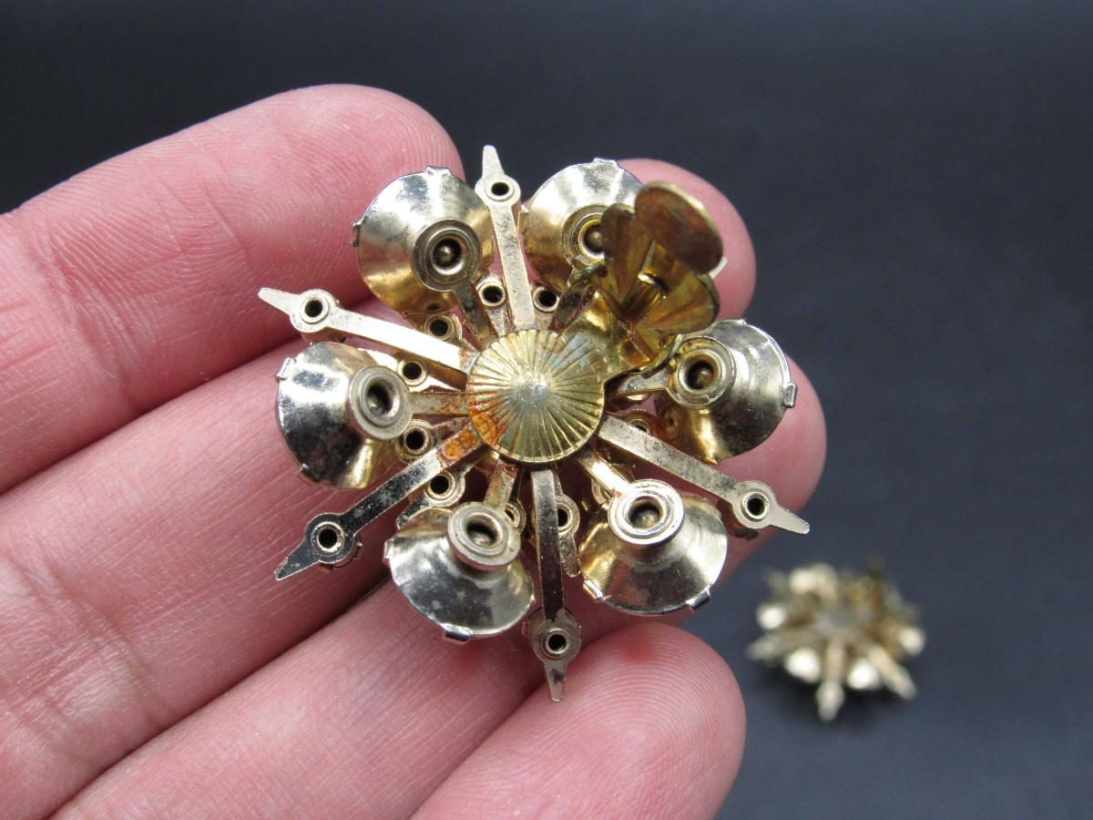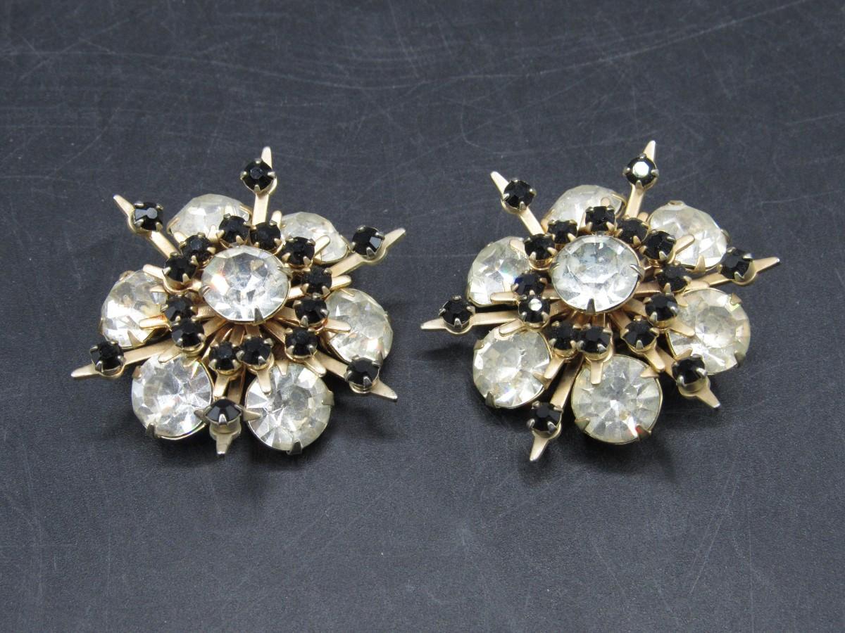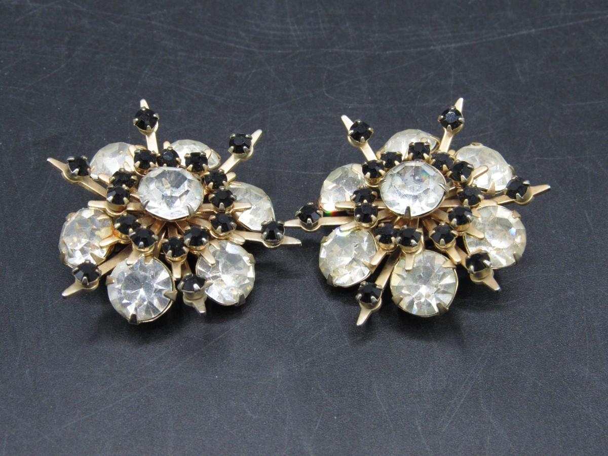 Rhinestone Flower Earrings Vintage Costume Jewelry Clip-on