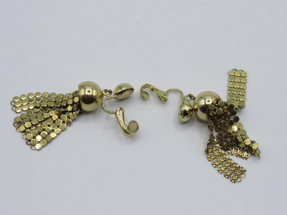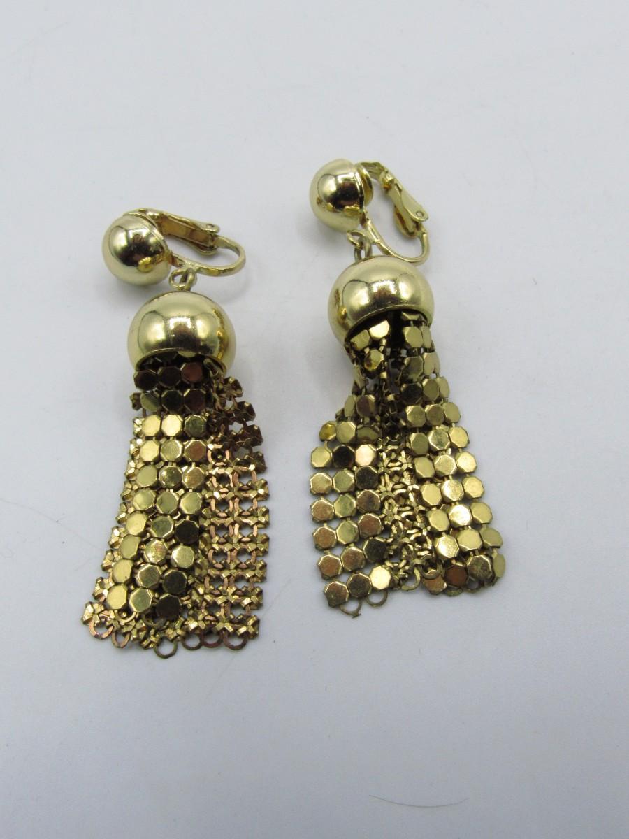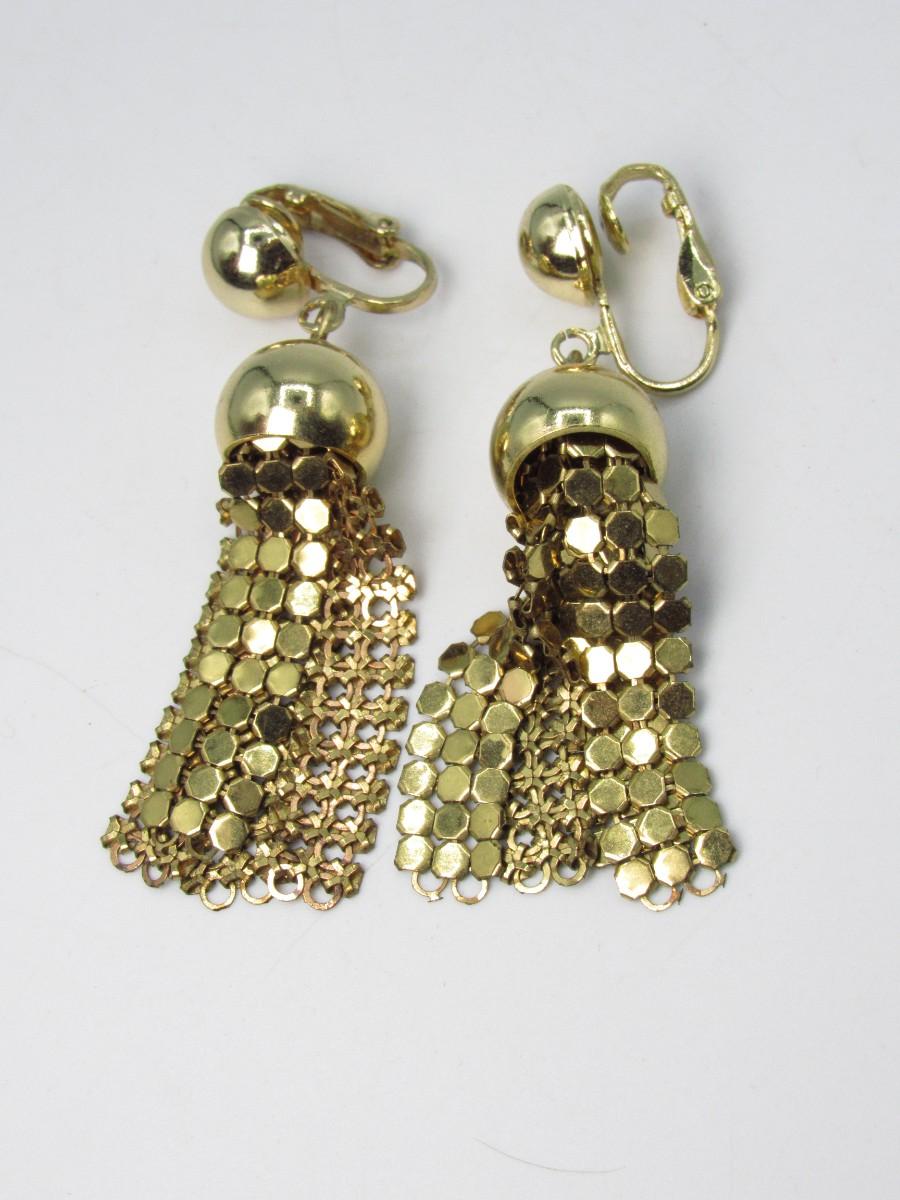 Vintage Costume Jewelry Clip-on Gold-tone Dangling Earrings