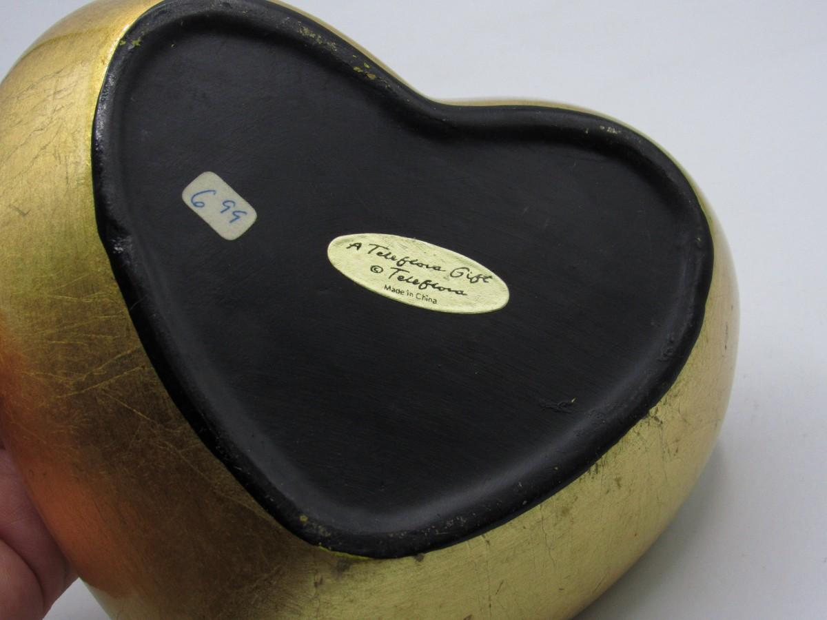 A Teleflora Gift Gold Painted Heart Trinket Bowl
