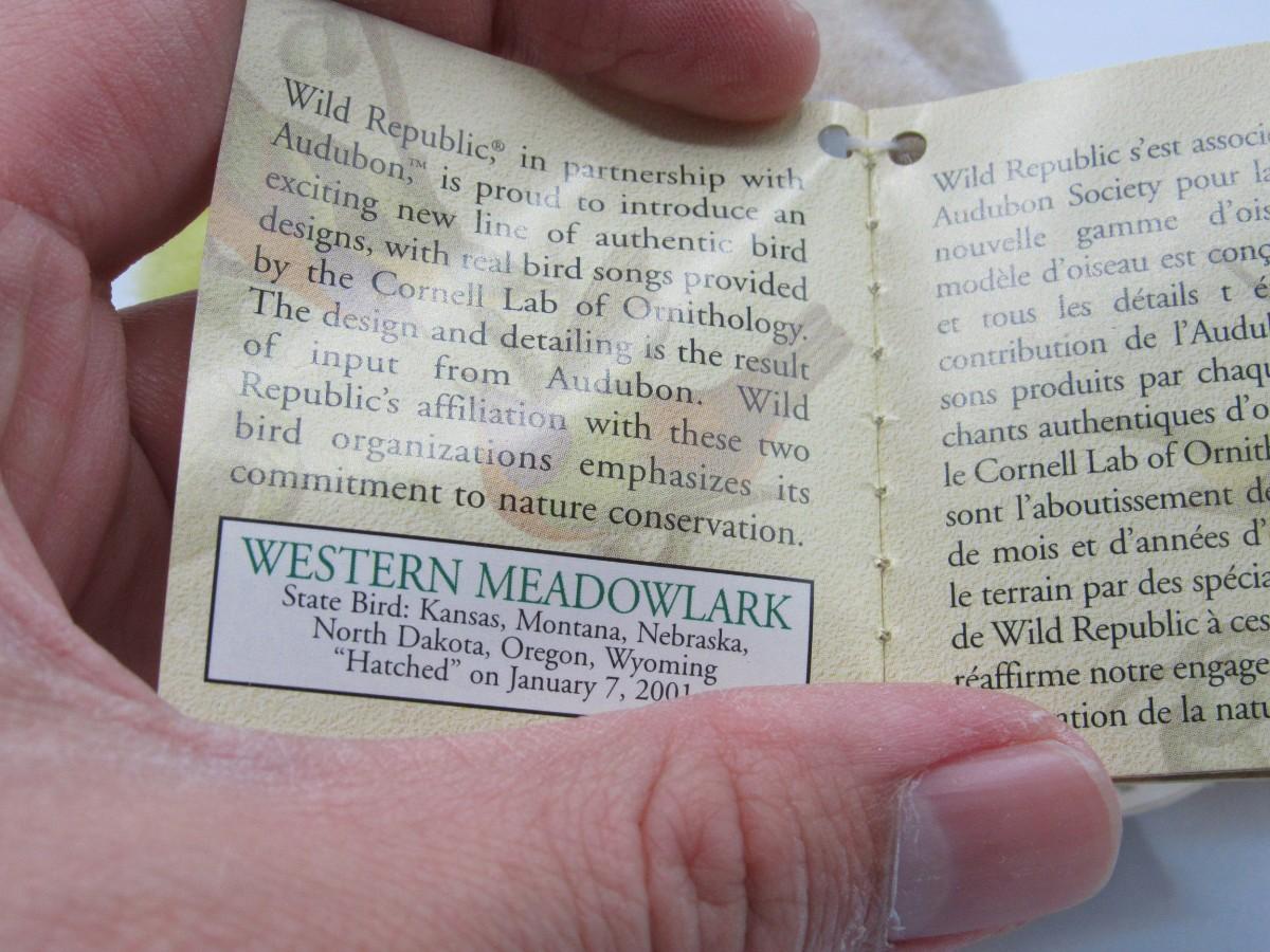Wild Republic Audubon Western Meadowlark Stuffed Plush Animal Bird