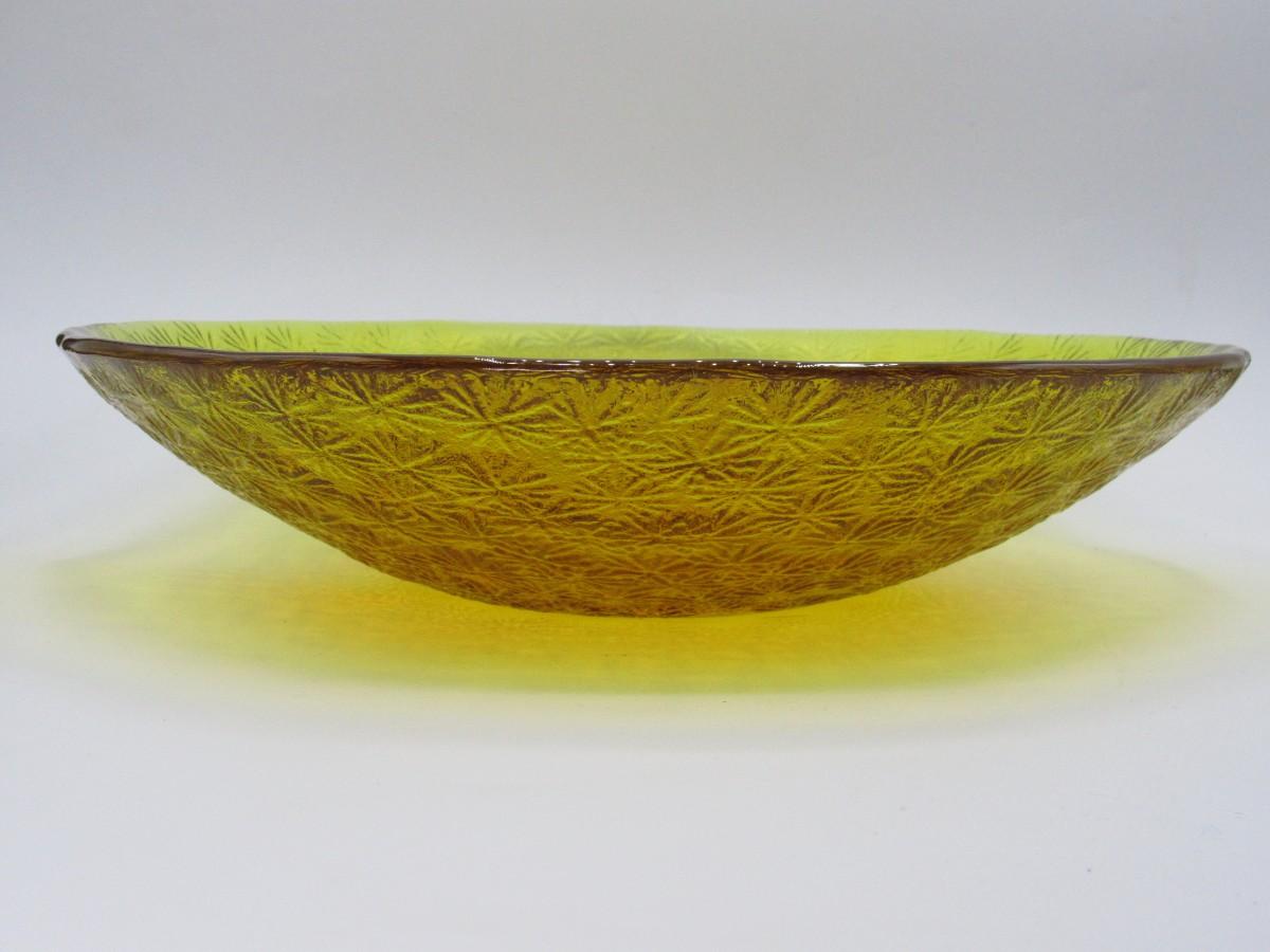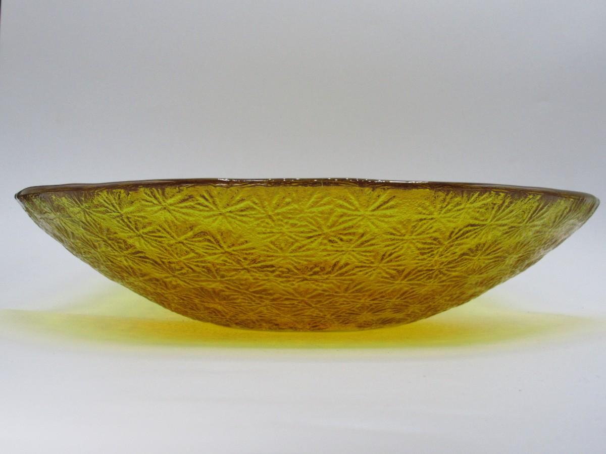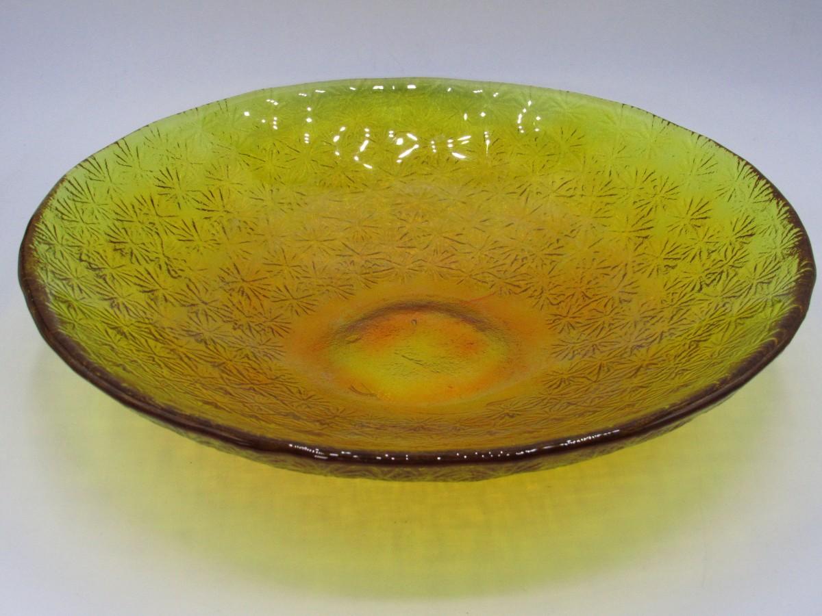 Blenko Large Round Amber Glass Fruit Bowl or Centerpiece