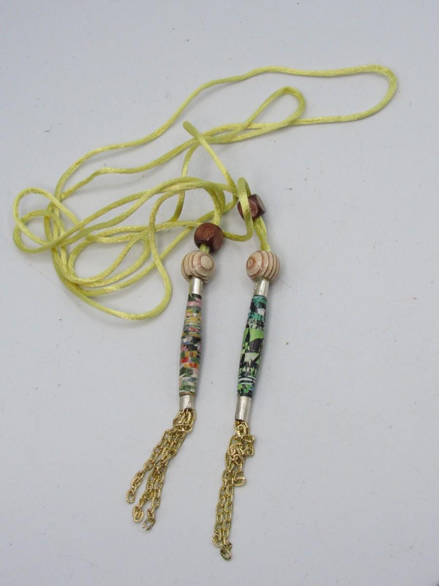 Made to hang around back of neck and down the front on both sides. In good condition.