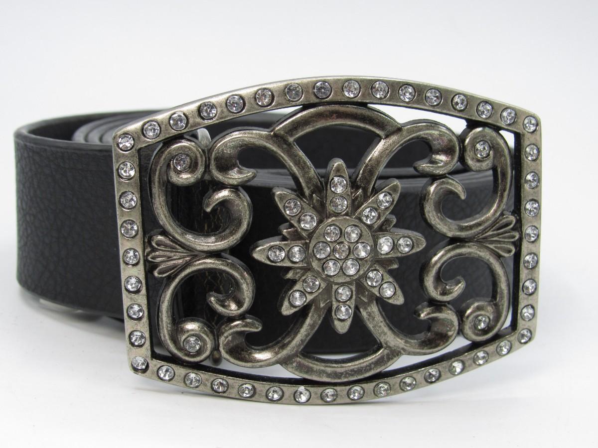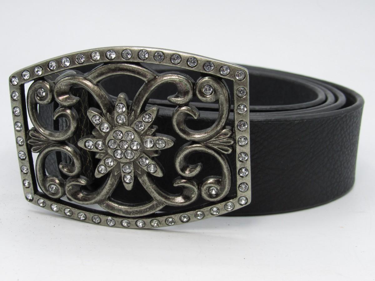 Women's Belt Size 28/29 Black Band and Rhinestone Buckle