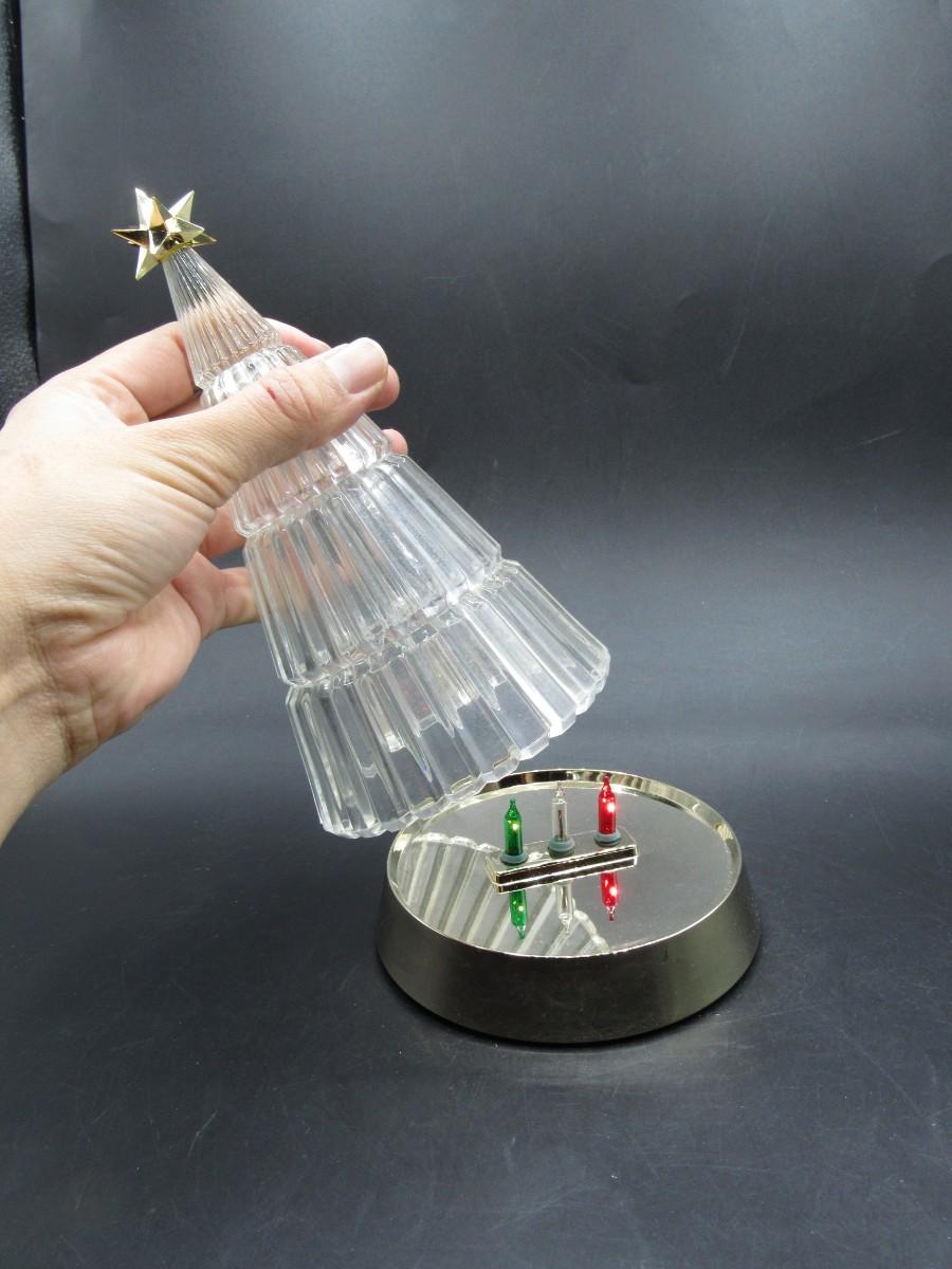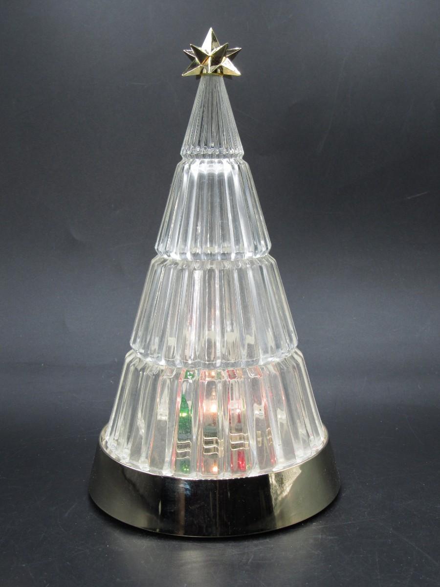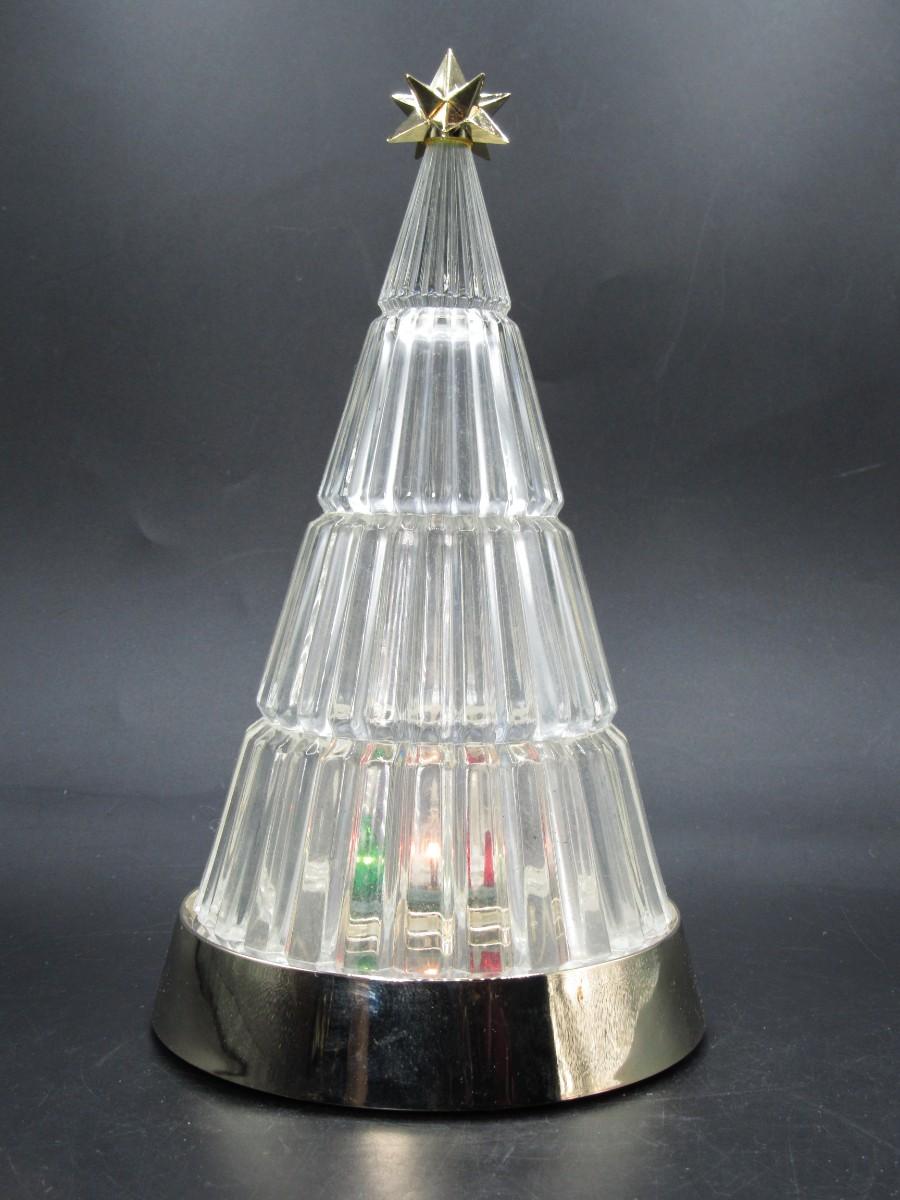 Cone-shaped translucent tree with multicolor lights inside. Battery powered.