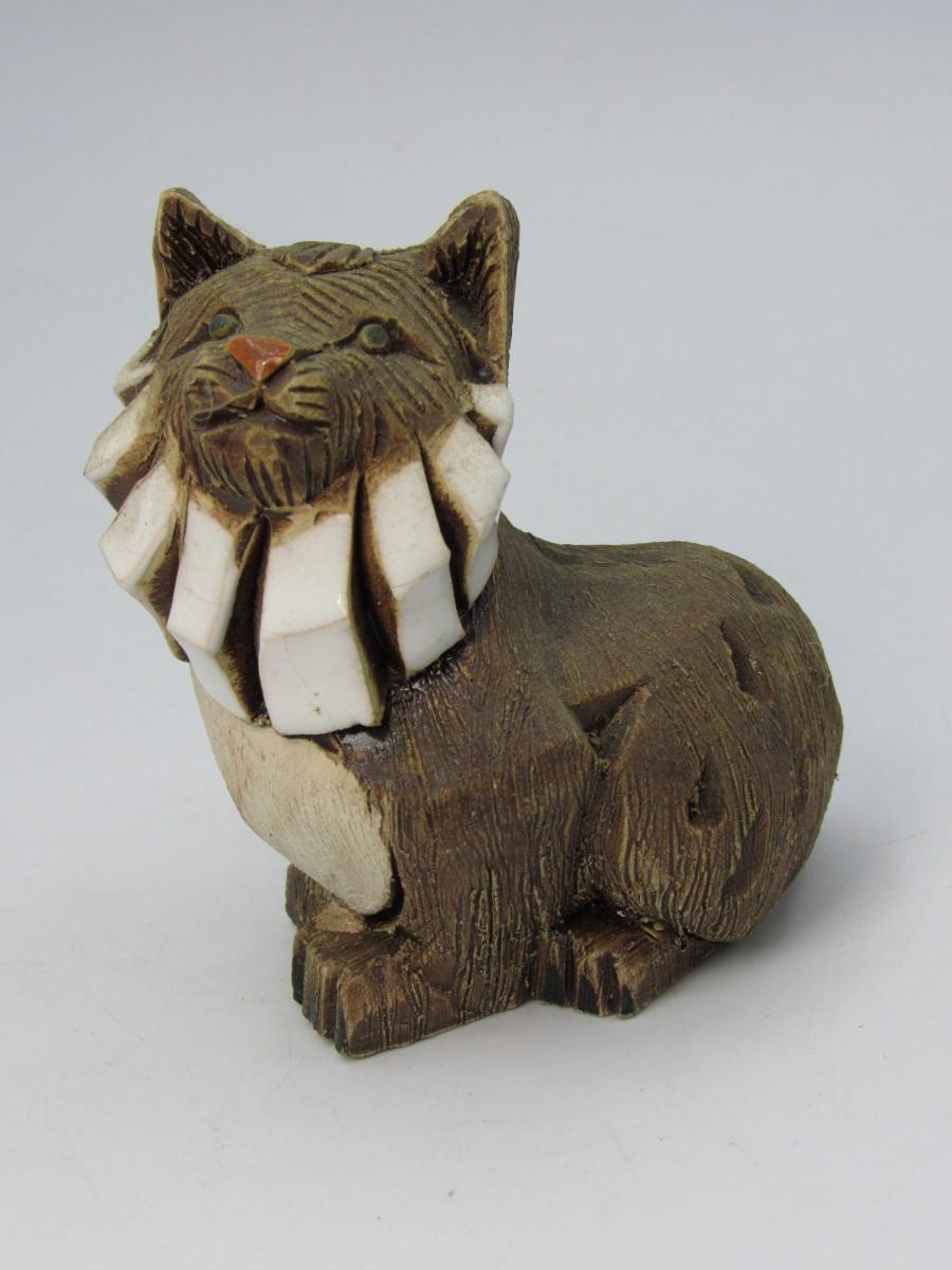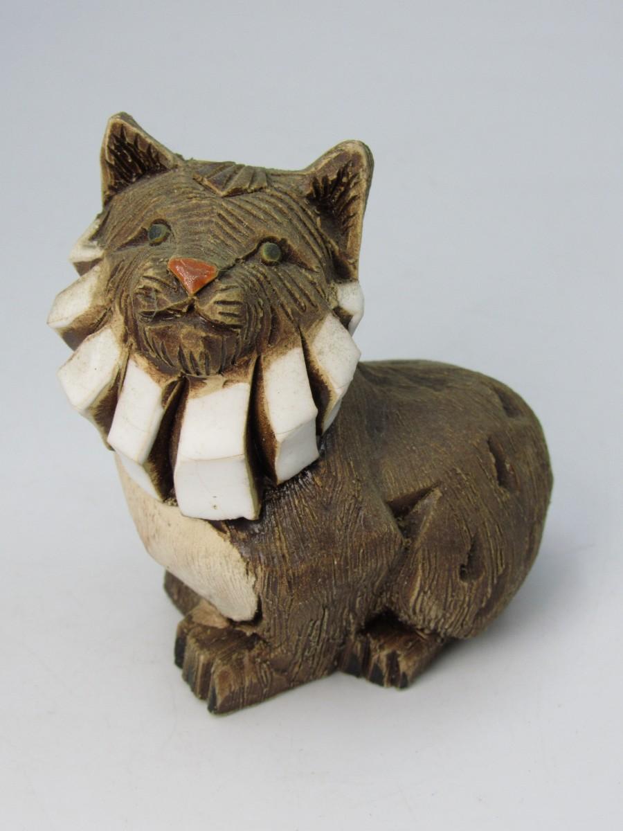Vintage Artesania Rinconada Figurine Linx Wild Cat Signed 2 3/4" H