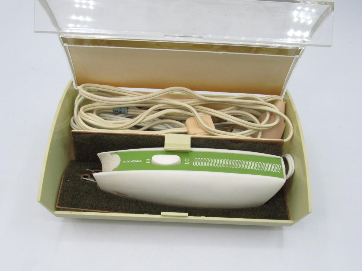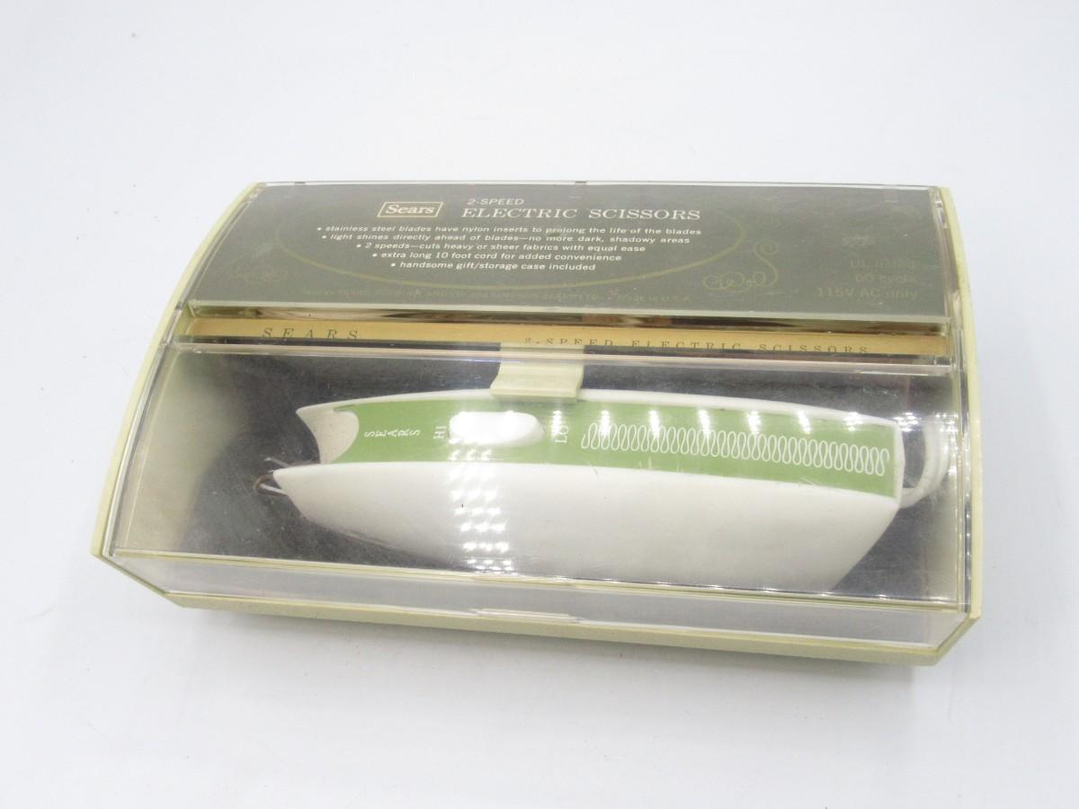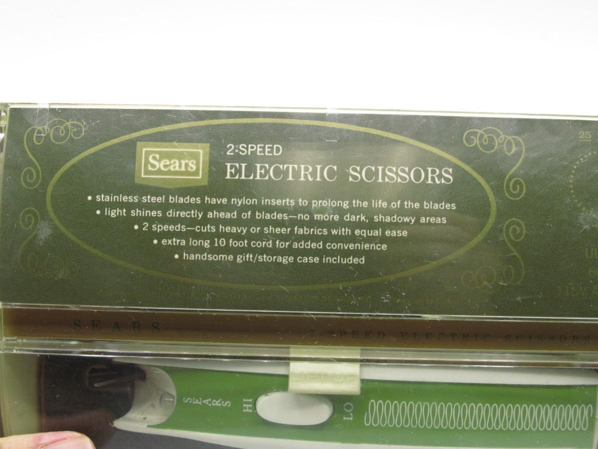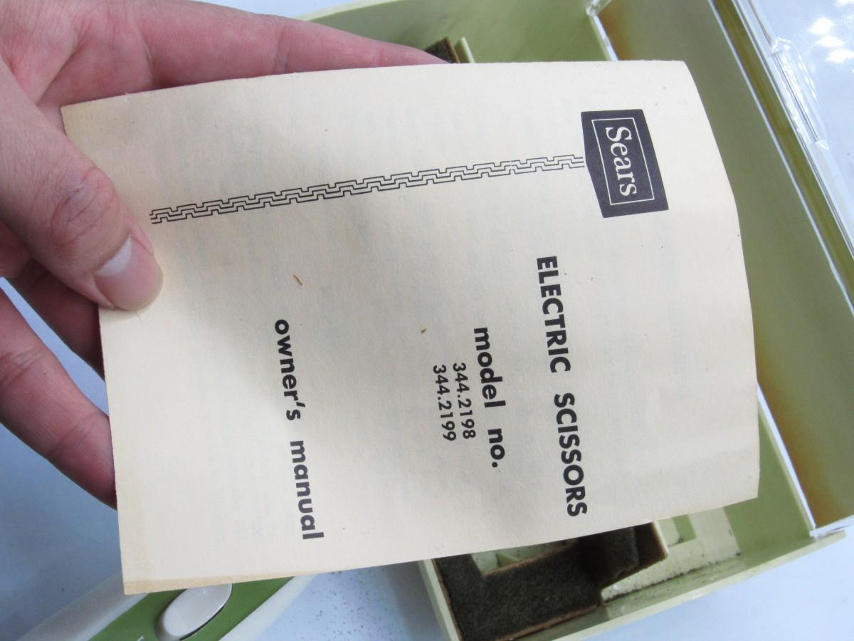 Vintage Sears 2-Speed Electric Scissors with original case and instruction sheet.