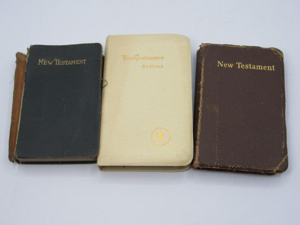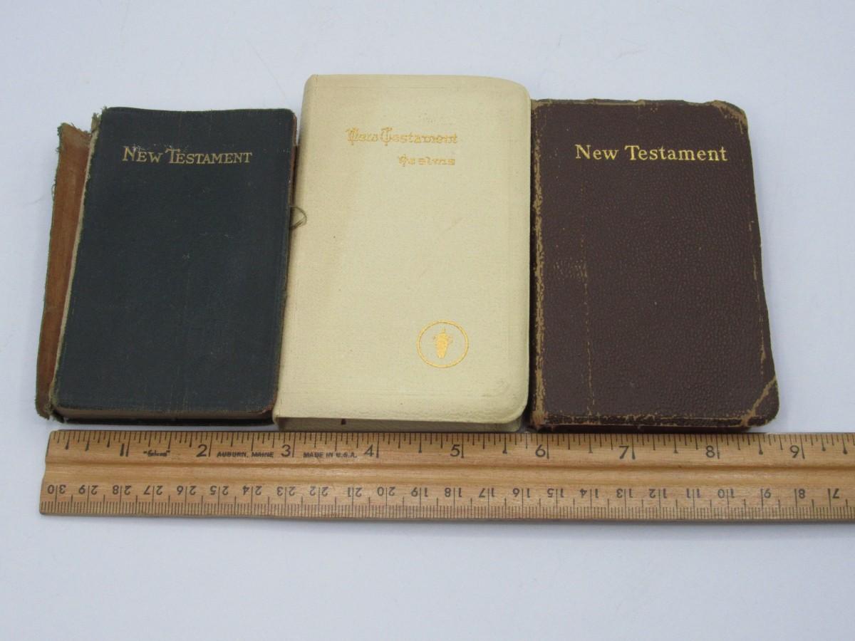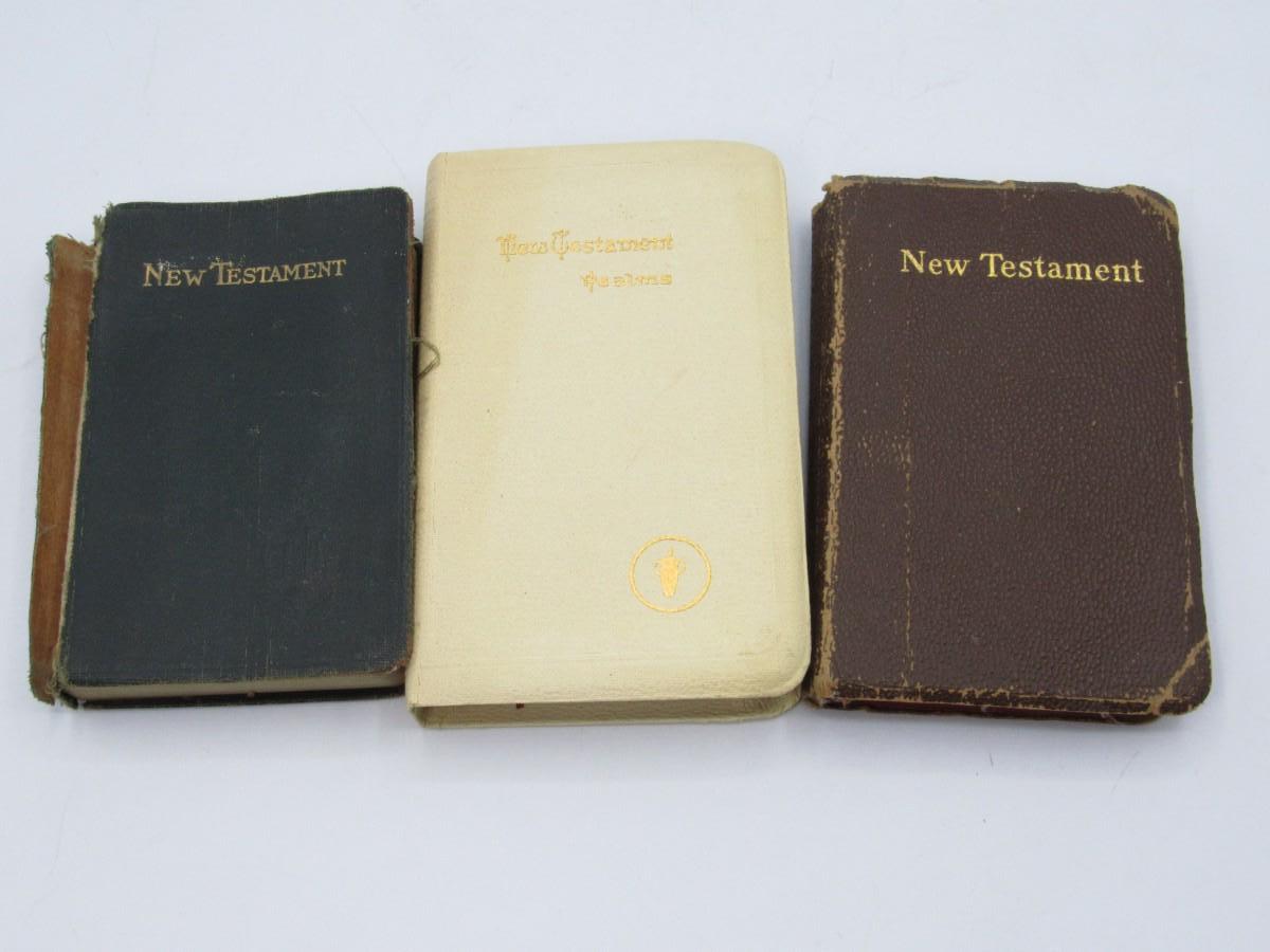 Set of 3 Vintage Old Testament Bibles Book of Psalms, very worn at the edges of the covers.