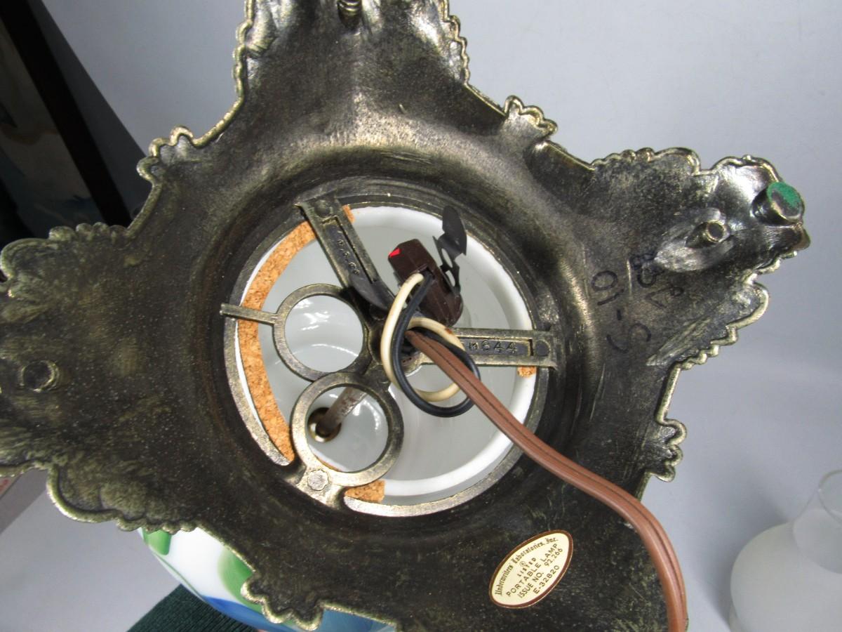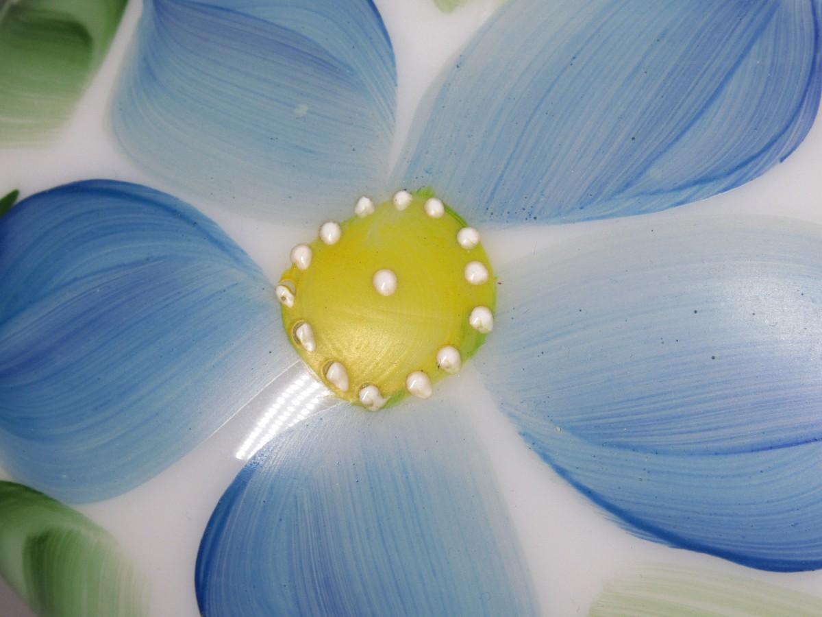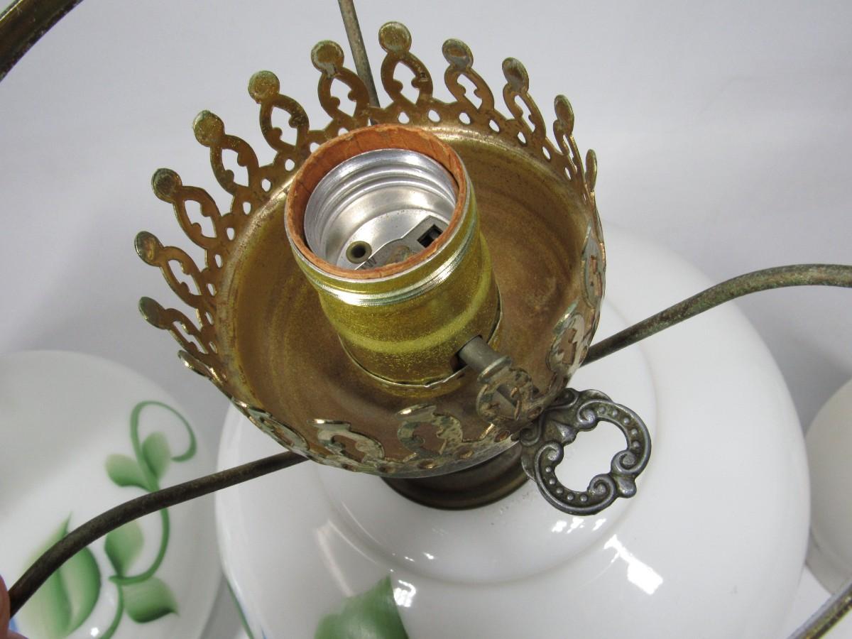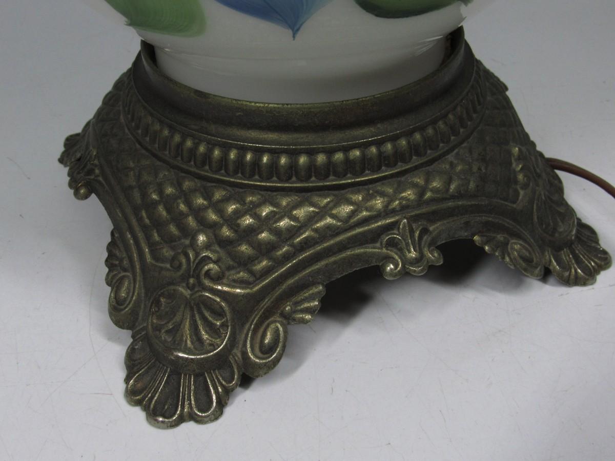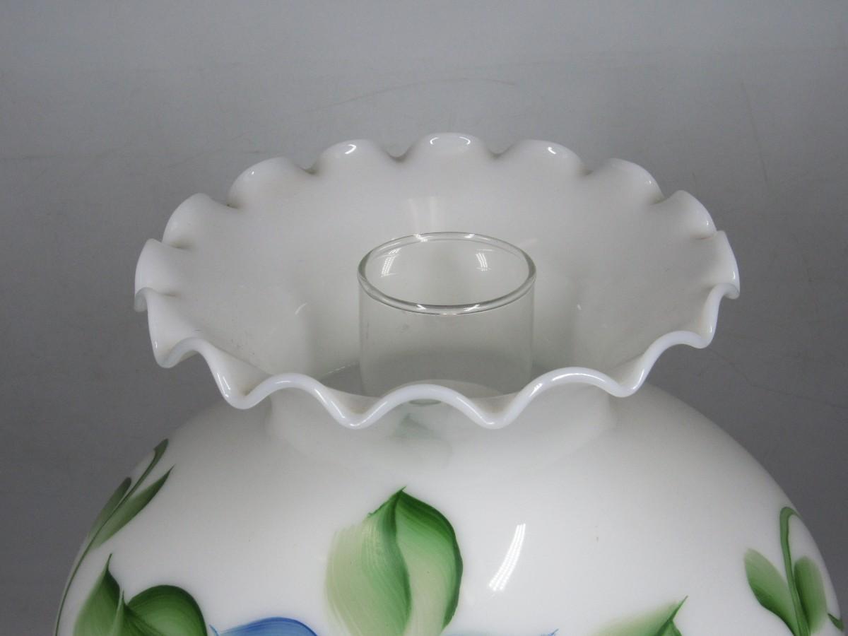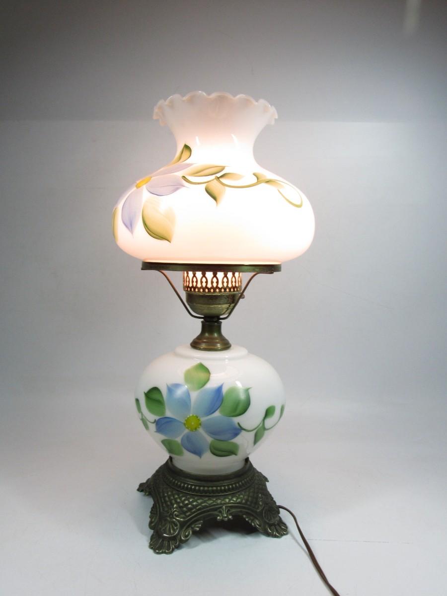 Vintage Milk Glass Hand Painted Blue Floral Hurricane Table Lamp