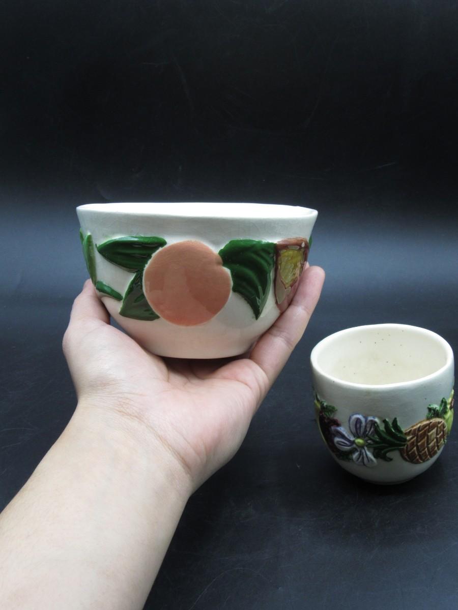 Vintage Ceramic Art Flower & Fruits Open Lid Sugar Bowl Kitchenware Containers