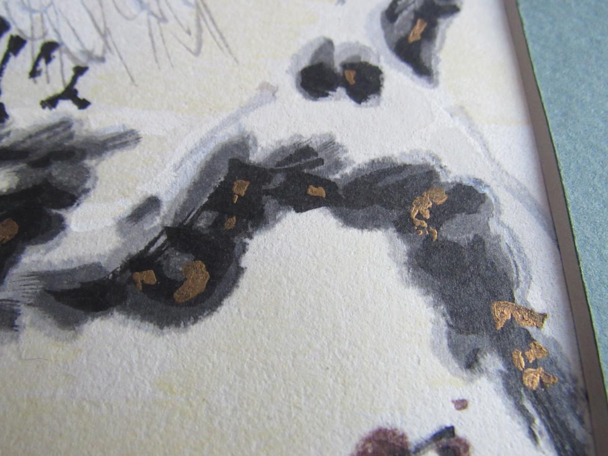 Very nice shape. I can't tell if this is original or not. It looks like the gold accents are and it feels somewhat embossed or indented in spots. Very hard to tell. Read seal mark by branch. Nice piece. Shipping is available at actual cost plus $5.00 per box handling and supply fee. See our terms for details. All sales final.