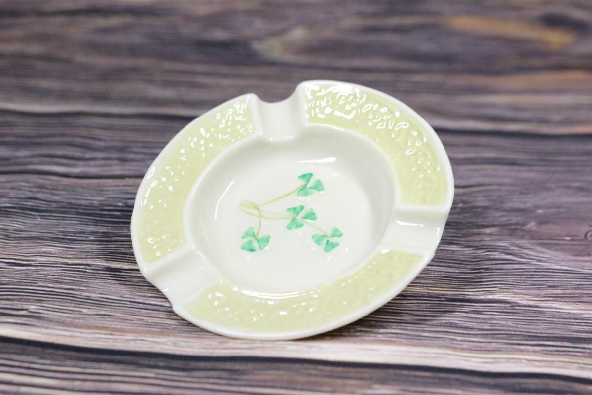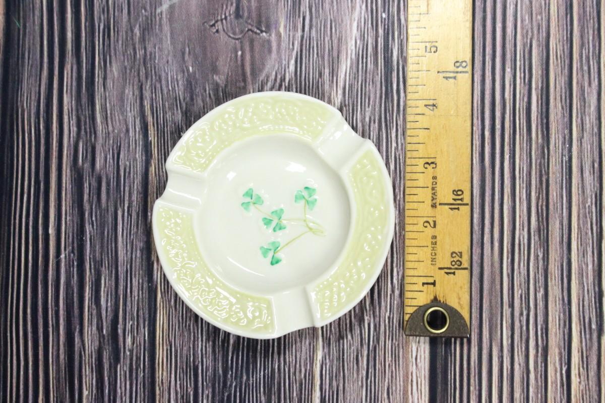 Vintage Belleek Shamrock Ceramic Ashtray, there's no cracks or chips to the ashtray and is in good useable condition. Check pictures for more details and for sizing.