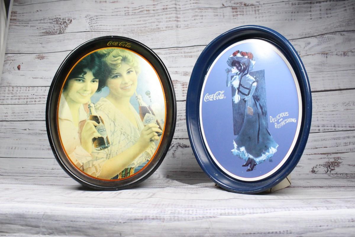 Vintage Pair Coca - Cola Reproduction Trays, there's no significant dents or damage to the trays. Check pictures for more details and for sizing.