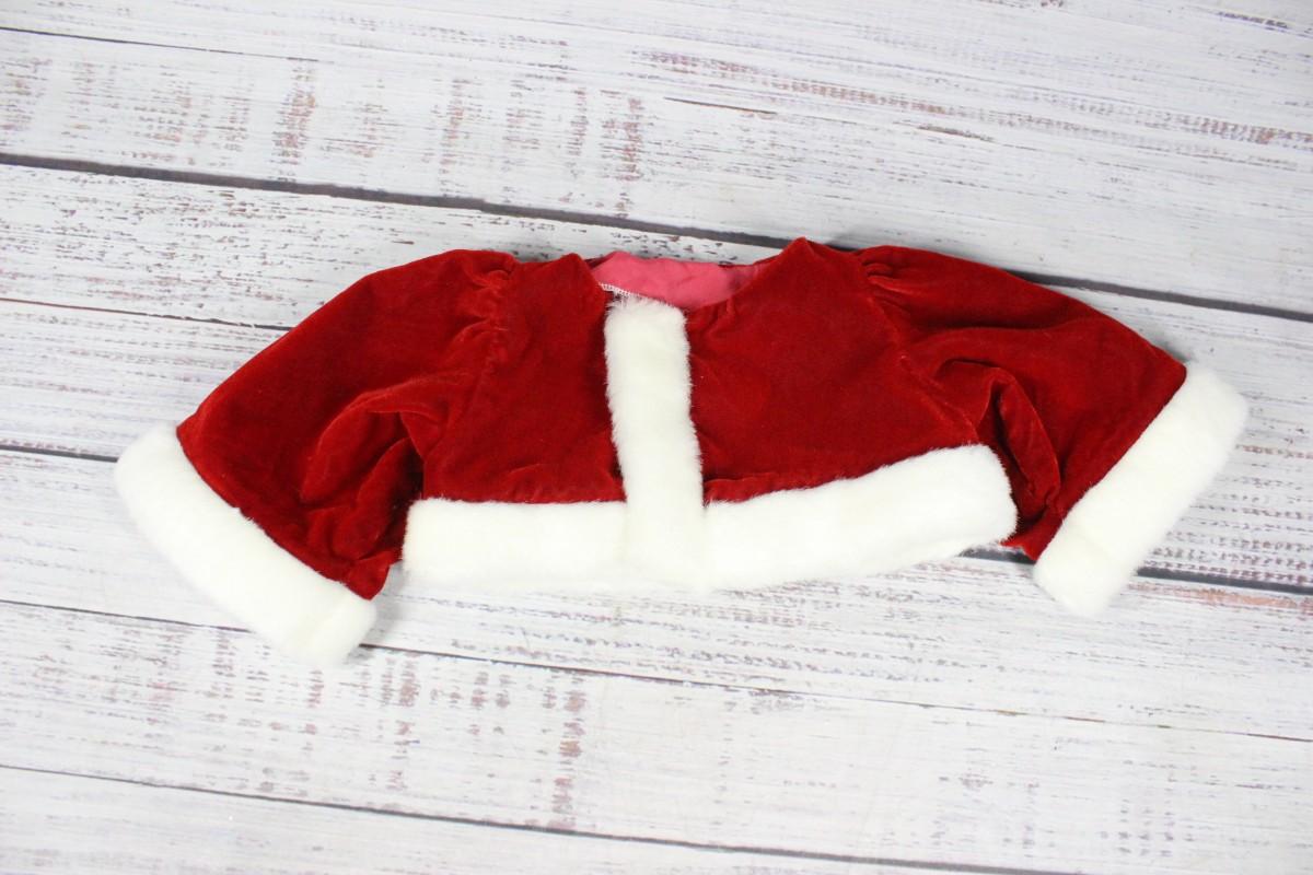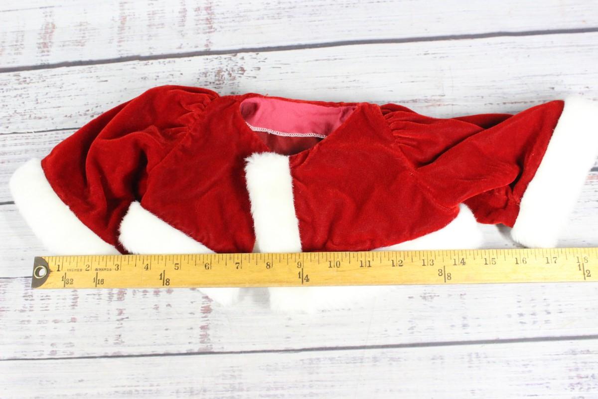 Christmas Santa Doll Sweater, there's no significant rips or tears to the sweater and is in good condition. Check pictures for more details and for sizing.