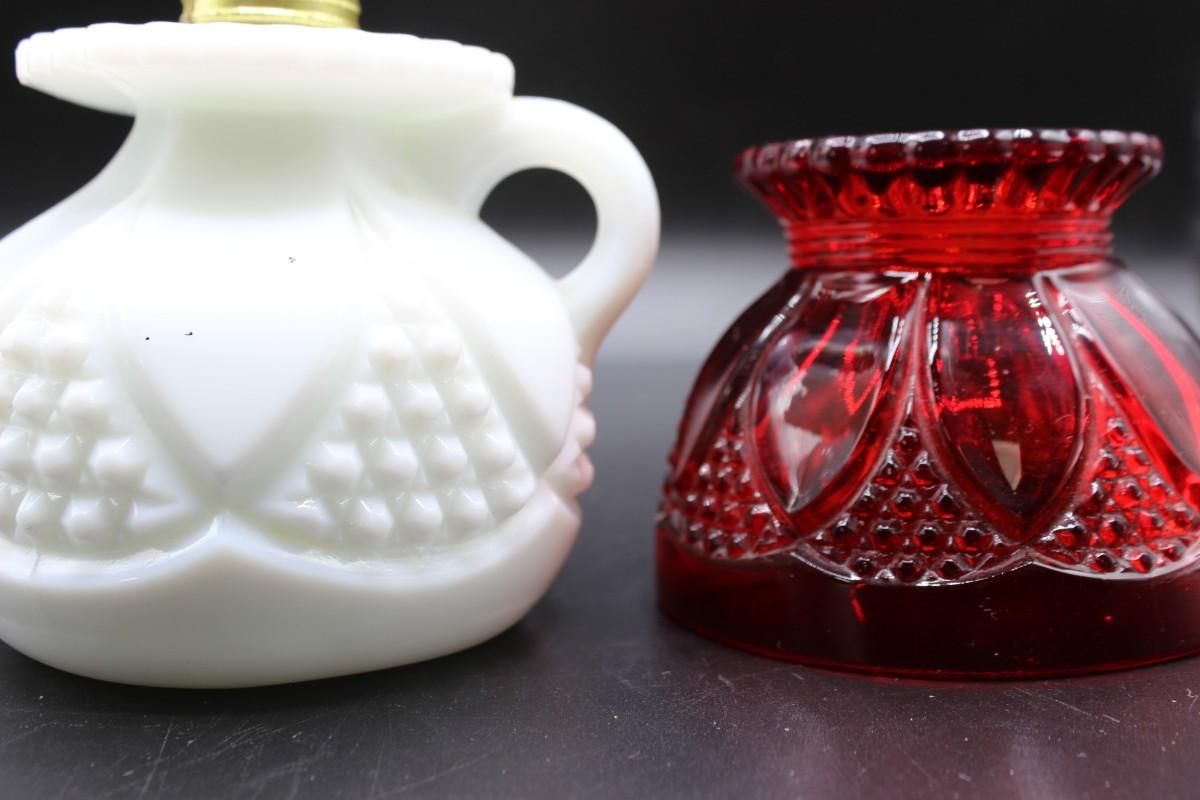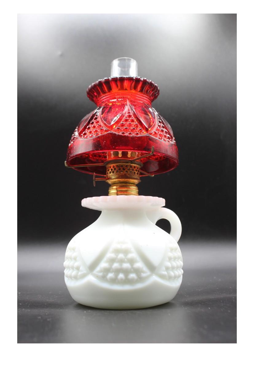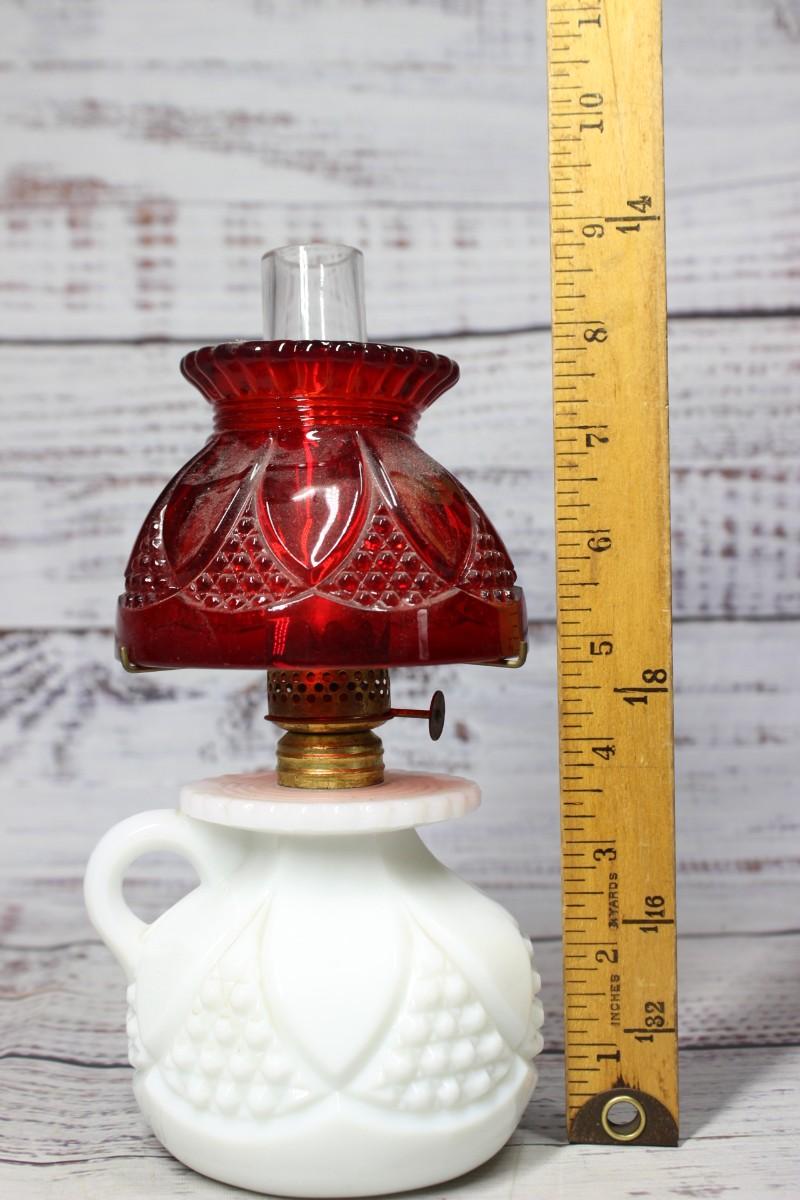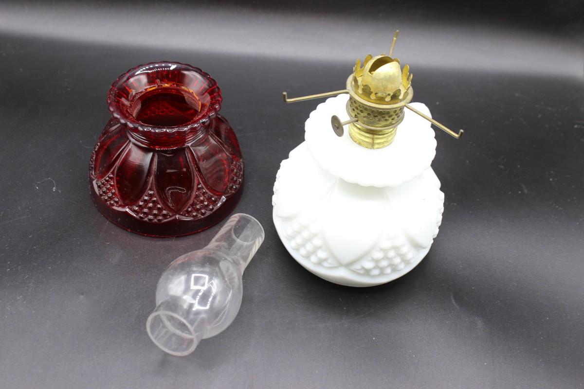 Vintage Imperial Milk & Ruby Red Glass Tulip & Cane Bundling Oil Lamp