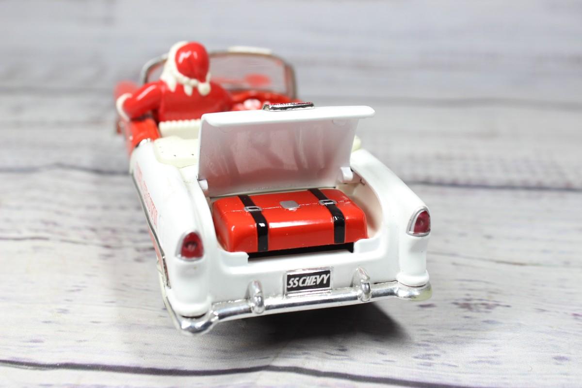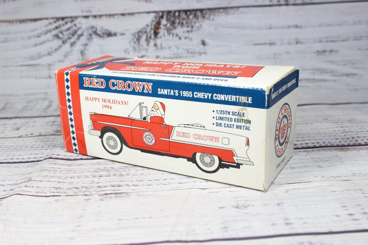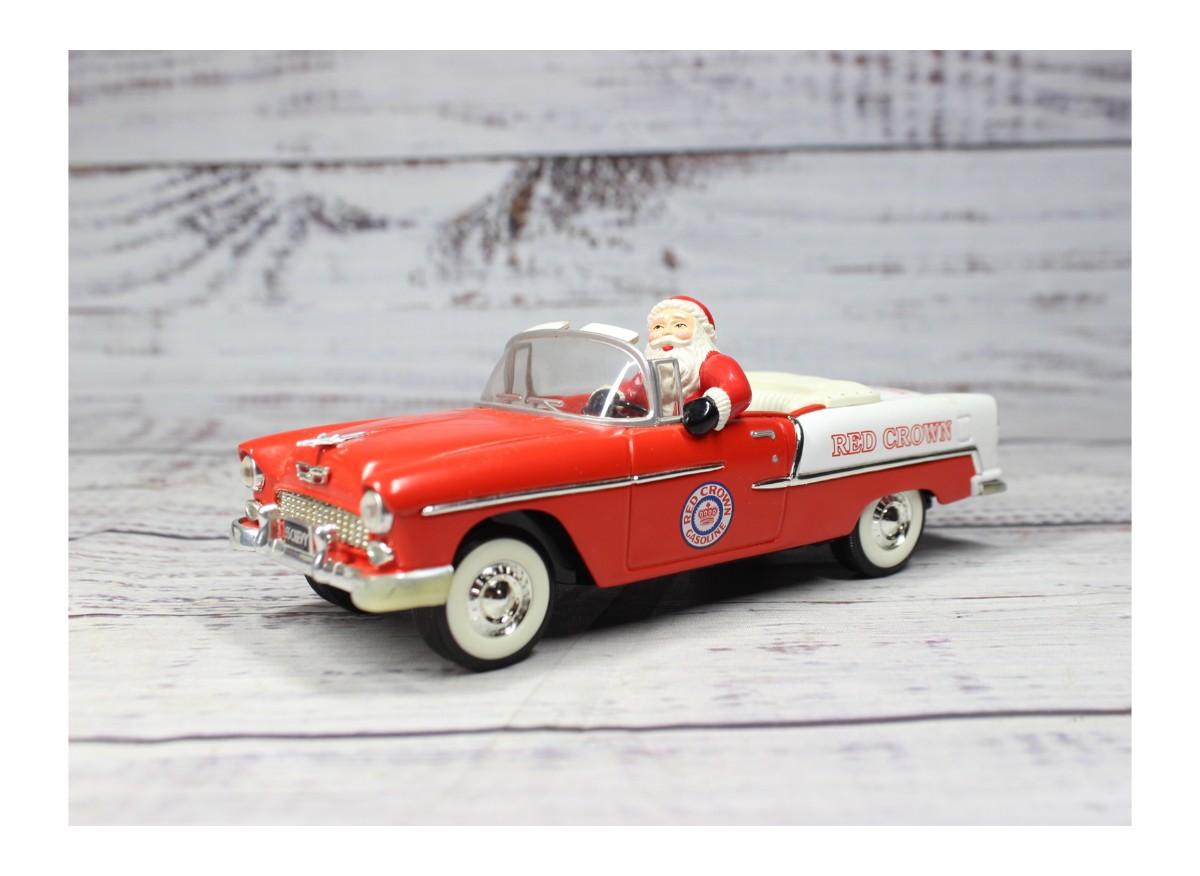 Retro Red Crown Christmas Santa Collectible Chevy Convertible Toy Car, there's no chips or cracks to the die-cast car and is in good vintage condition. Comes with original packaging, check pictures for more details and for sizing.