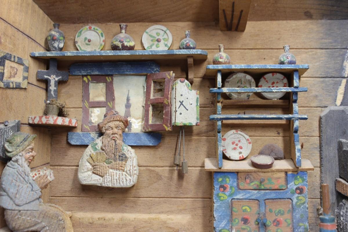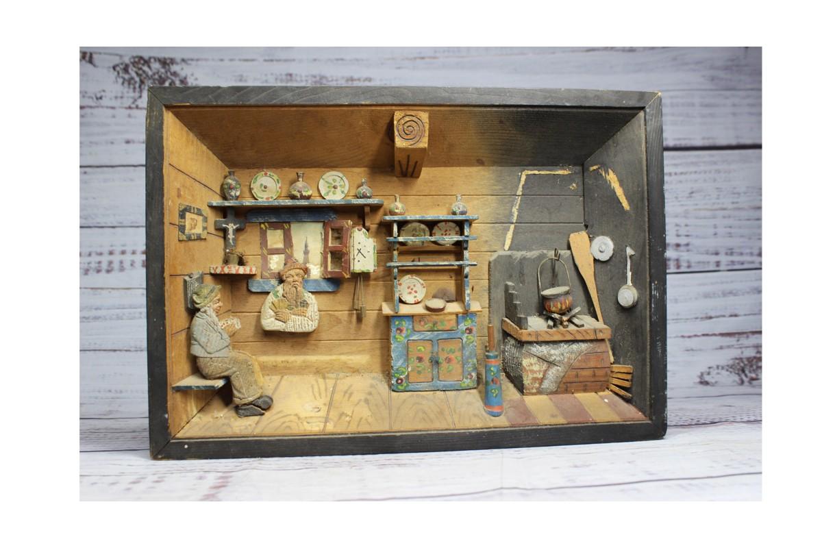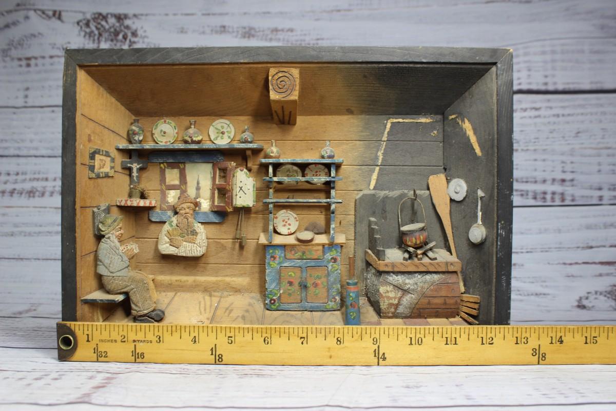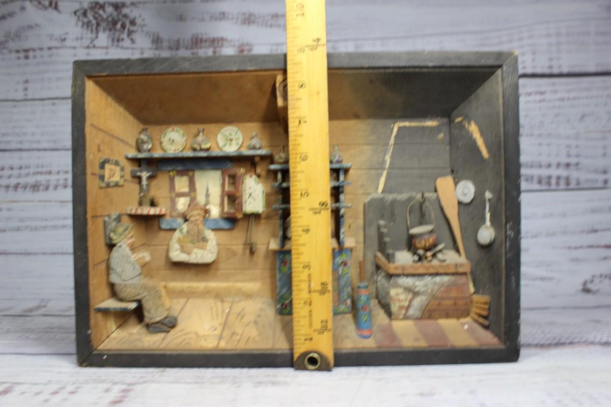 Vintage Swiss Folk Art Carved Wooden Diorama Shadow Box