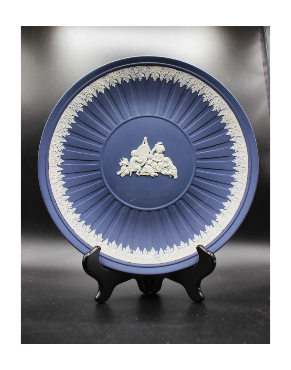 Vintage Made in England Dark Blue Jasperware Collectible Decorative Plate by Wedgwood