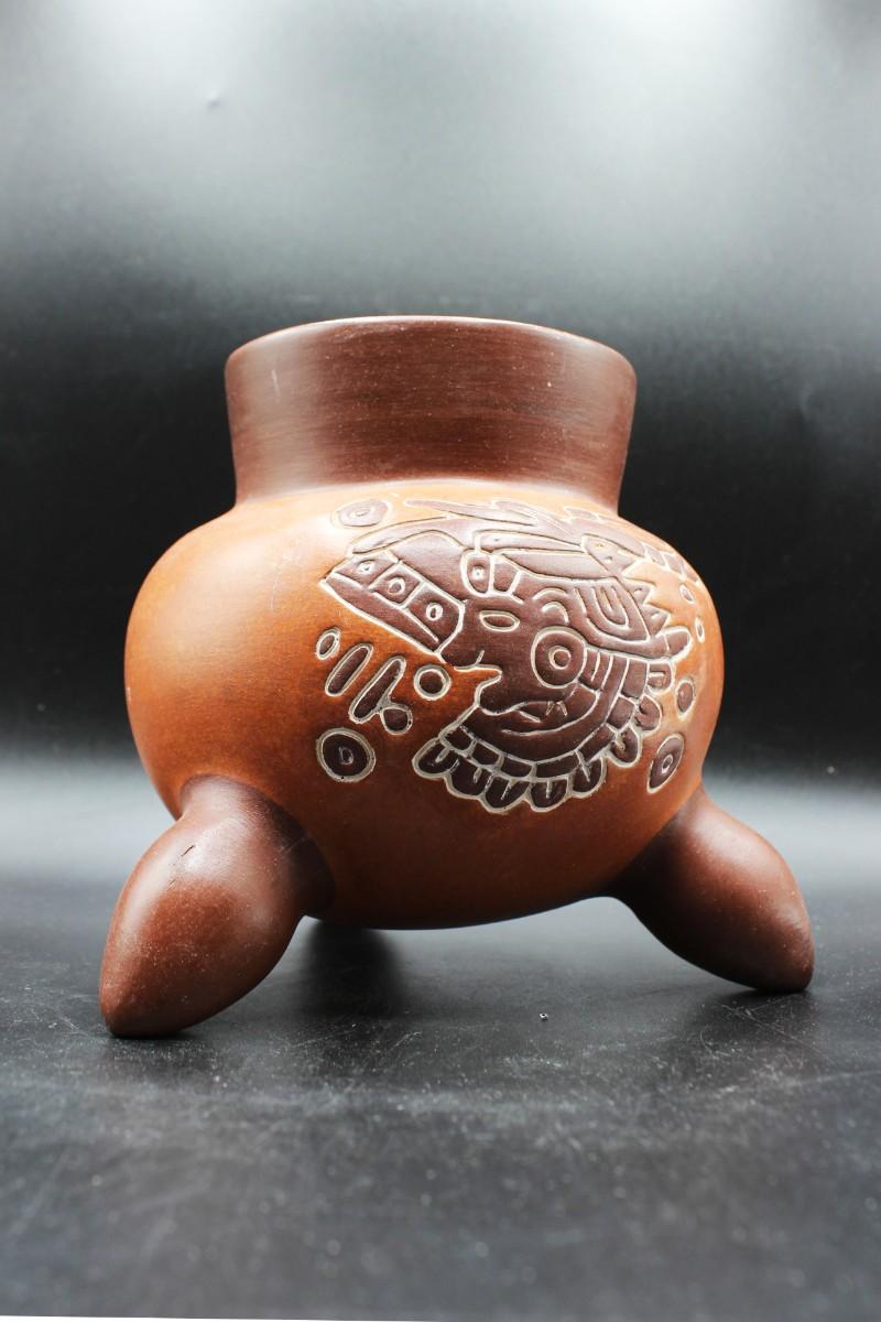 Vintage Mexican Aztec Souvenir Tripod Vessel Three Legged Pottery Piece