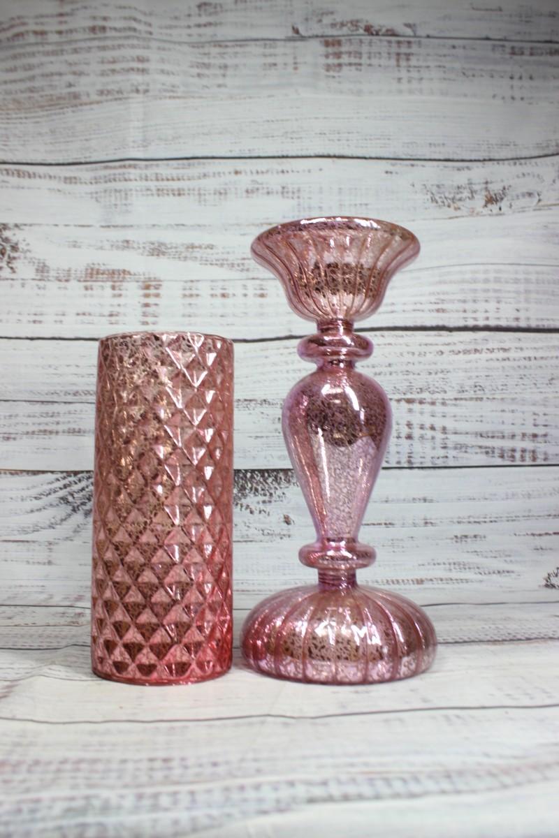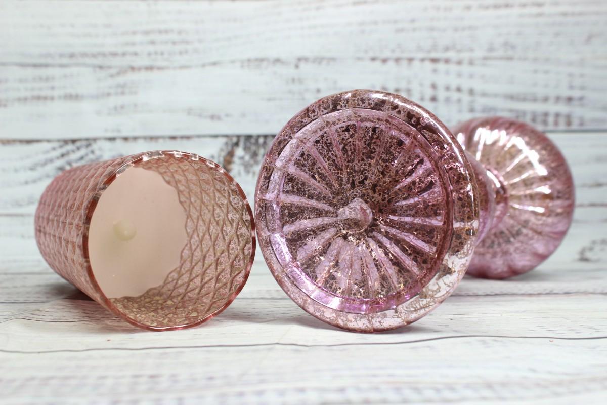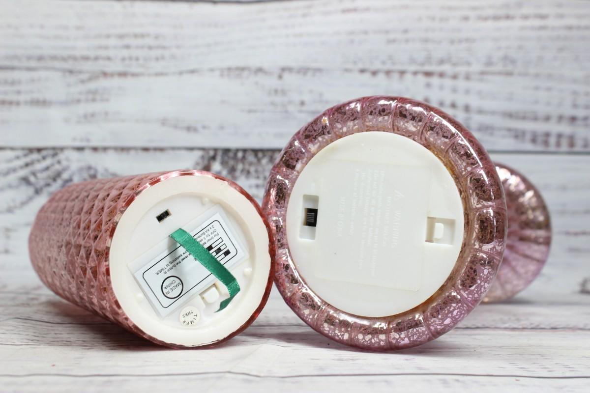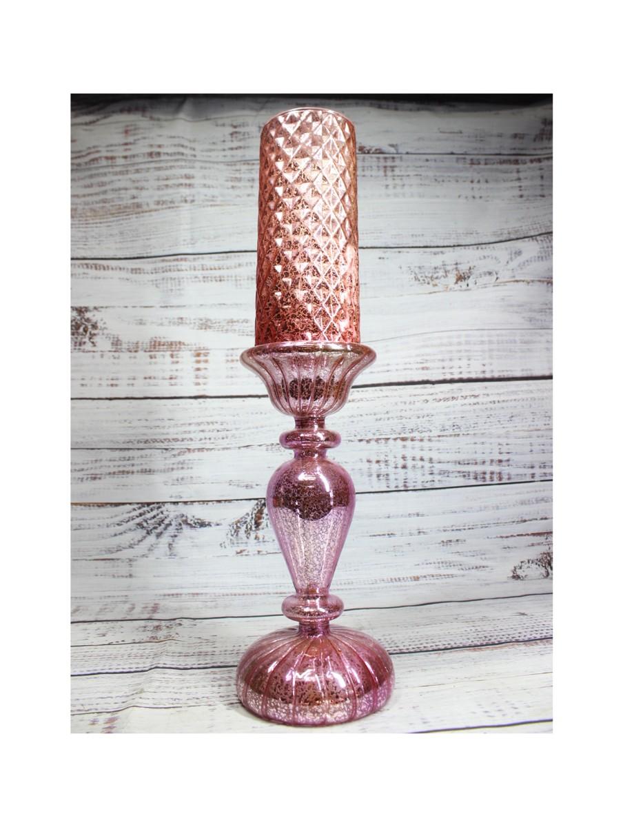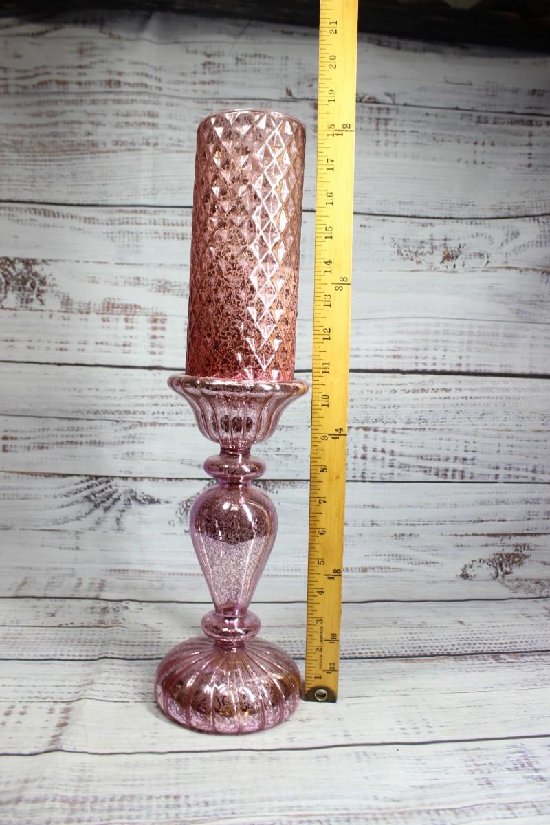 Pink Plastic Battery Op Candle and Decorative Mercury Glass Style Base